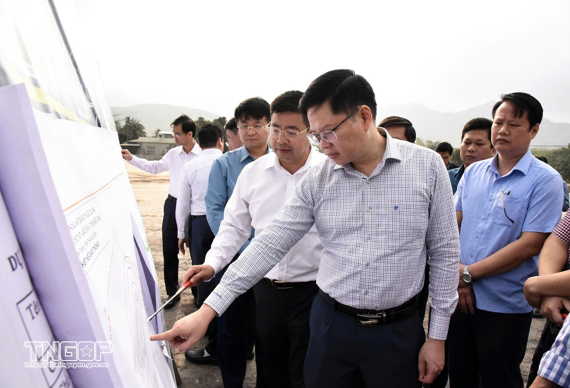 Đoàn công tác kiểm tra thực địa tiến độ thi công khu tái định cư Bản Áng, xã Thanh Thịnh