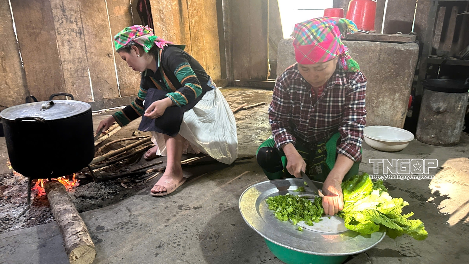 Chúng tôi đến nhà bà Hoàng Thị Sần ở thôn Bản Nghè khi bà đang cẩn thận treo những bắp ngô vàng óng trước hiên nhà. Bà Sần chia sẻ: Ngày xưa còn khổ, mèn mén là món ăn chính, là “cơm” hàng ngày của người Mông. Ngày nay, cuộc sống của người Mông đã đủ đầy hơn, nhưng nhiều gia đình vẫn làm món mèn mén để ăn trong các bữa ăn, đặc biệt đây cũng là món ăn không thể thiếu được trong các ngày lễ, ngày tết.