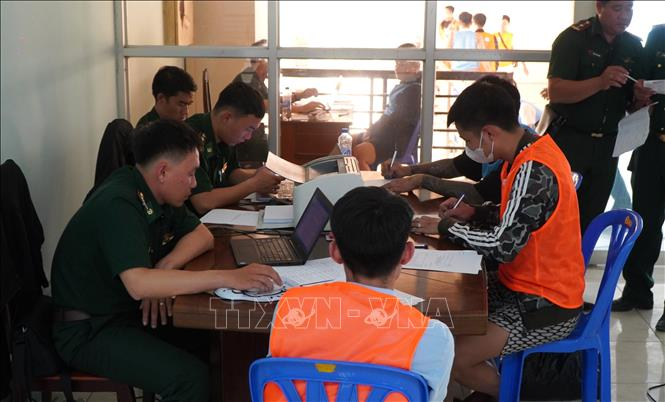 Công dân Việt Nam được lực lượng chức năng Campuchia trao trả tại Cửa khẩu Quốc tế Dinh Bà (tỉnh Đồng Tháp).