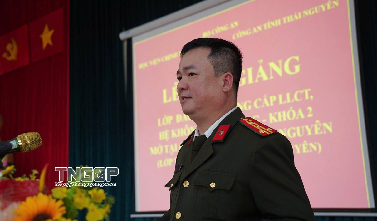 Đại tá Thăng Quang Huy, Phó Giám đốc Công an tỉnh Thái Nguyên phát biểu giao nhiệm vụ cho các học viên