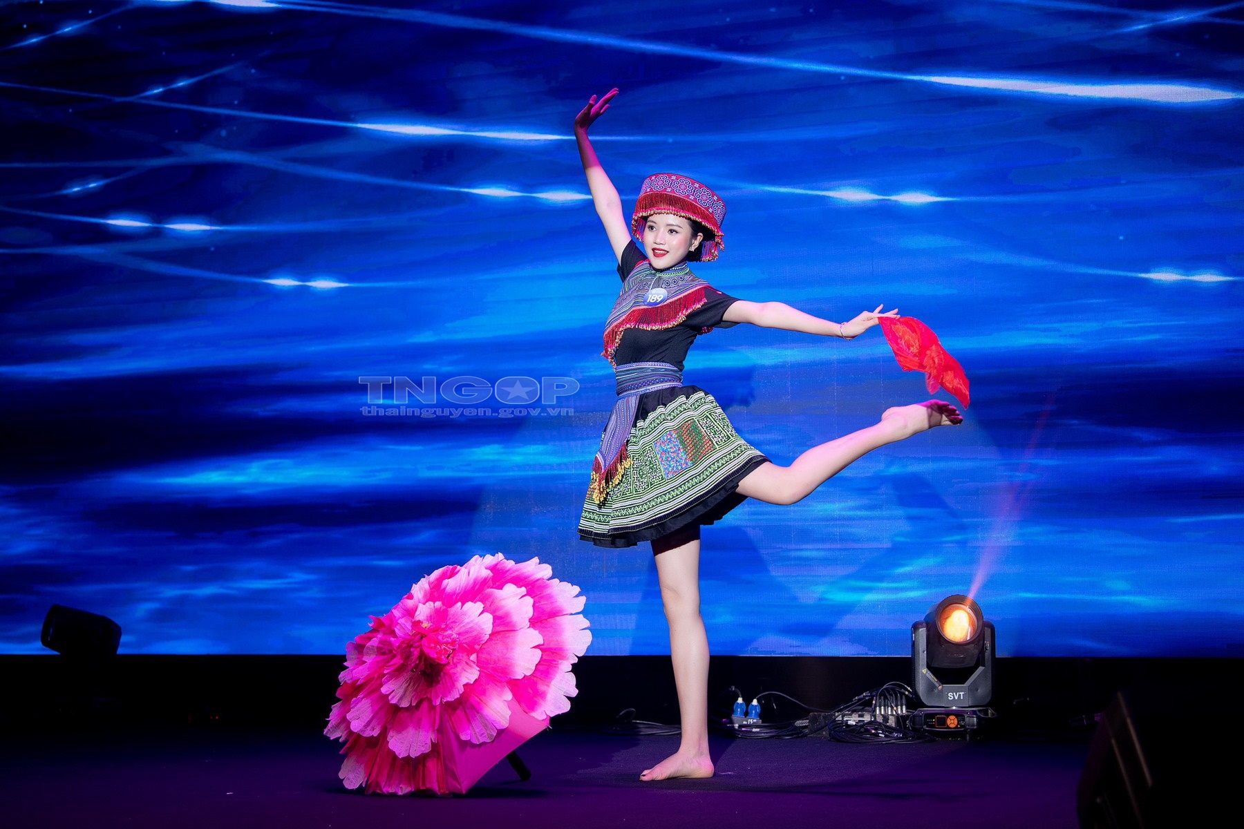 Lý Thị Thanh Thuý trong phần thi Người đẹp tài năng: Thuyết trình bằng tiếng trung về Thái Nguyên + múa  “Gọi em bên suối”