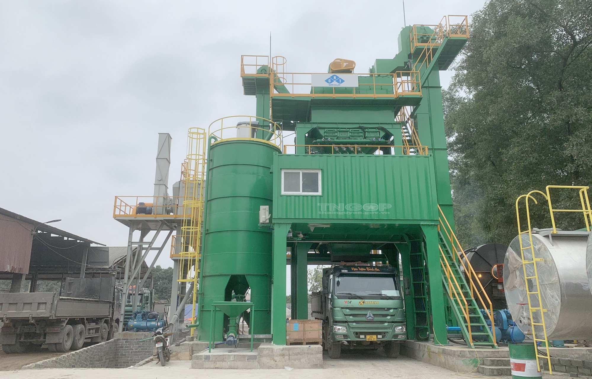 Toàn bộ dây truyền sản xuất bê tông Asphat được CNT Group nhập khẩu từ Hàn Quốc với công nghệ sản xuất mới nhất, thân thiện với môi trường không gây tiếng ồn và đảm bảo không ảnh hưởng đến môi trường xung quanh. Đại diện đơn vị thiết kế thi công - SPECO LTD cho biết: Nhà máy bê tông Asphalt của CNT Group sẽ đạt những tiêu chuẩn Hàn Quốc “KS”, tiêu chuẩn công nghiệp Nhật Bản (JIS), tiêu chuẩn ISO 9001 và tiêu chuẩn SPECO. Trong đó, Trạm bê tông Asphalt là một loại thiết bị dùng để sản xuất bê tông nhựa, thông qua quá trình trộn và gia nhiệt các loại đá khoáng sản, cốt liệu (bột đá/đá dăm), chất kết dính (thường là bitum, trong vài trường hợp là hắc ín) và có thể có các chất phụ gia khác. Đặc biệt, với công nghệ lọc bụi khô nên hoàn toàn thân thiện với môi trường, hạn chế tiếng ồn và đảm bảo không ảnh hưởng đến môi trường xung quanh.