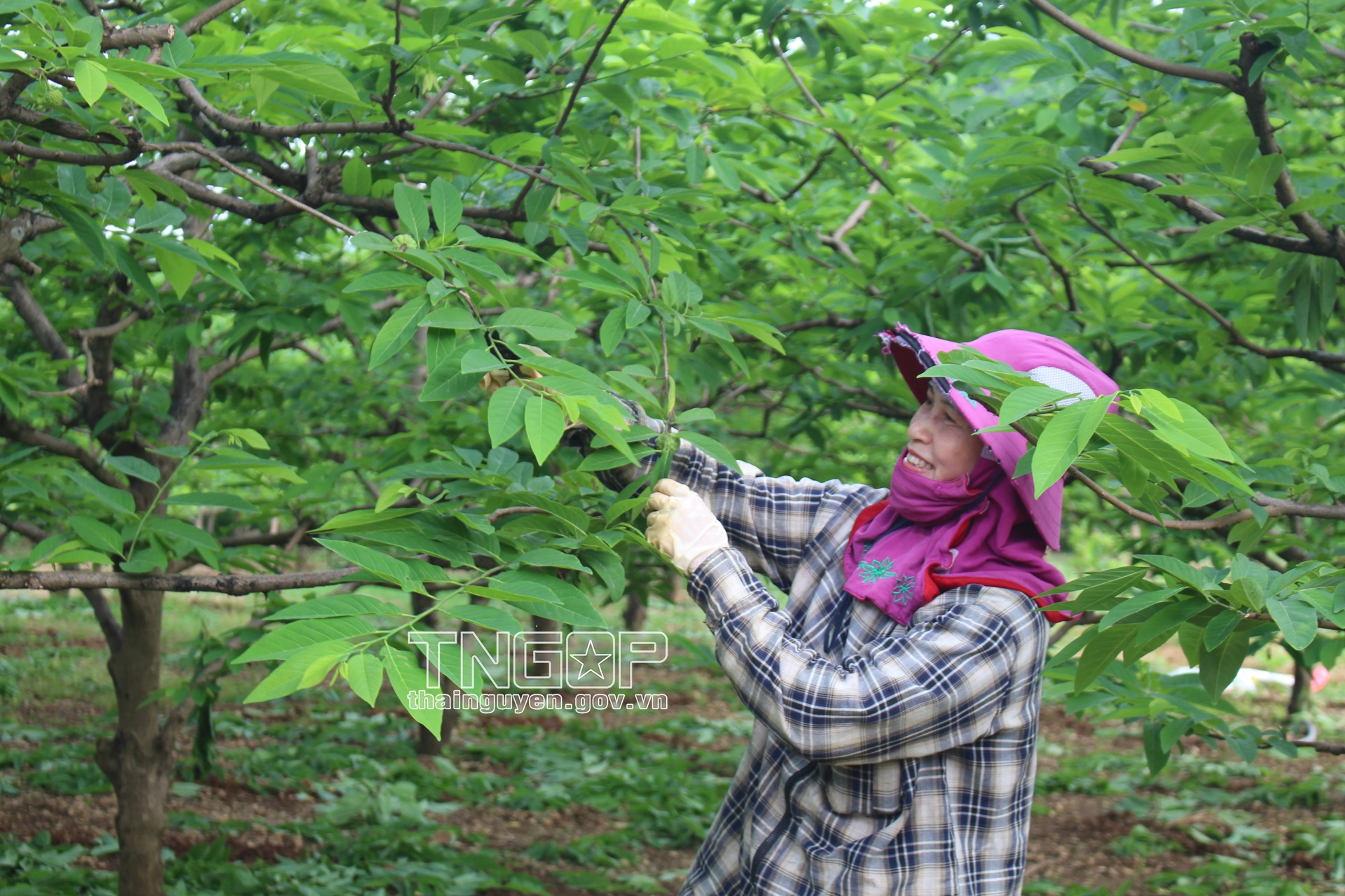 Chị Triệu Thị Luyến, xóm Hiên Minh, xã La Hiên (Võ Nhai) chăm sóc na rải vụ