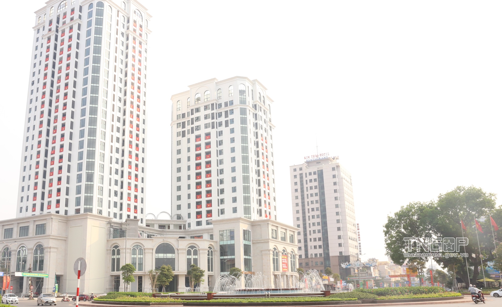 Trung tâm TP. Thái Nguyên rợp cờ đỏ sao vàng mừng ngày Thống nhất