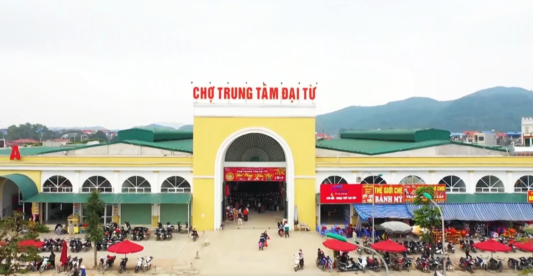 Hoạt động thương mại dịch vụ được thúc đẩy, góp phần nâng cao chất lượng đời sống Nhân dân. (Trong ảnh: Chợ Trung tâm Đại Từ thuộc thị trấn Hùng Sơn)