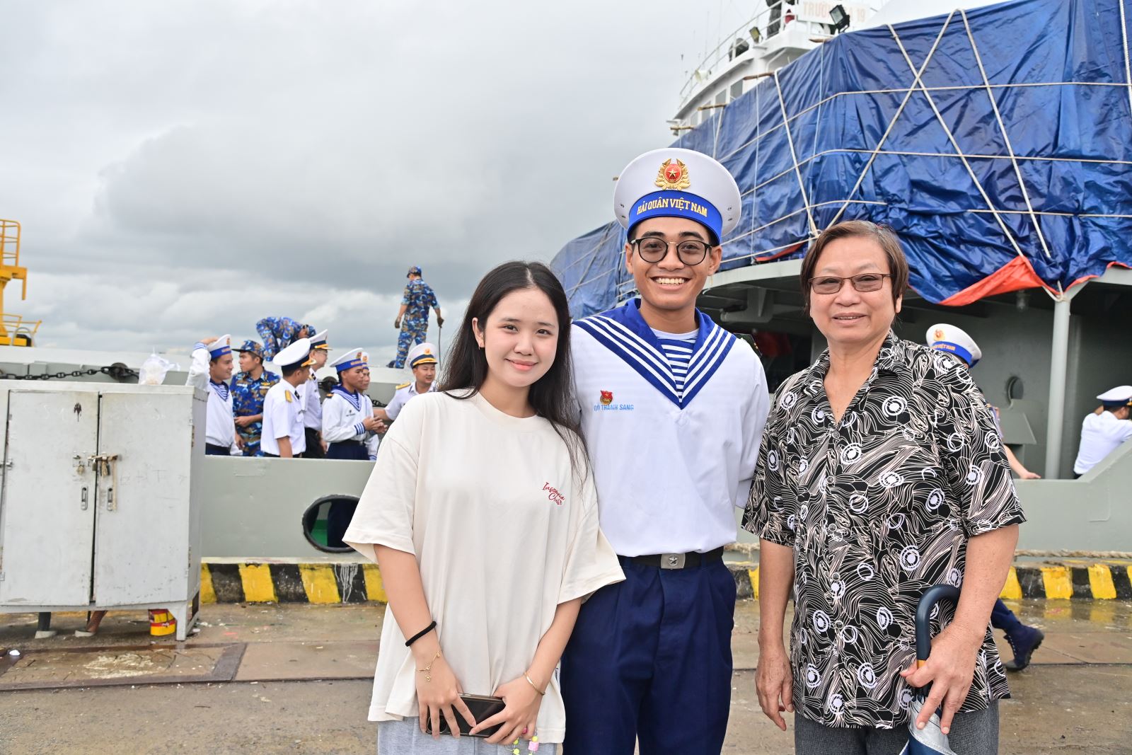 Sáng sớm, tại Quân cảng Quốc tế phường Thắng Nhất (TP Hồ Chí Minh), trước giờ tàu rời bến, xuất phát chở đoàn cán bộ, chiến sĩ (CBCS) ra nhà giàn DK1 nhận nhiệm vụ công tác, chiến sĩ Đỗ Thanh Sang (Nhà giàn DK1/17), không dấu nổi niềm vui, niềm tự hào, khi vinh dự được thực hiện nhiệm vụ nơi tuyến đầu Tổ quốc và vui hơn khi có mẹ và bạn gái đến tiễn.
