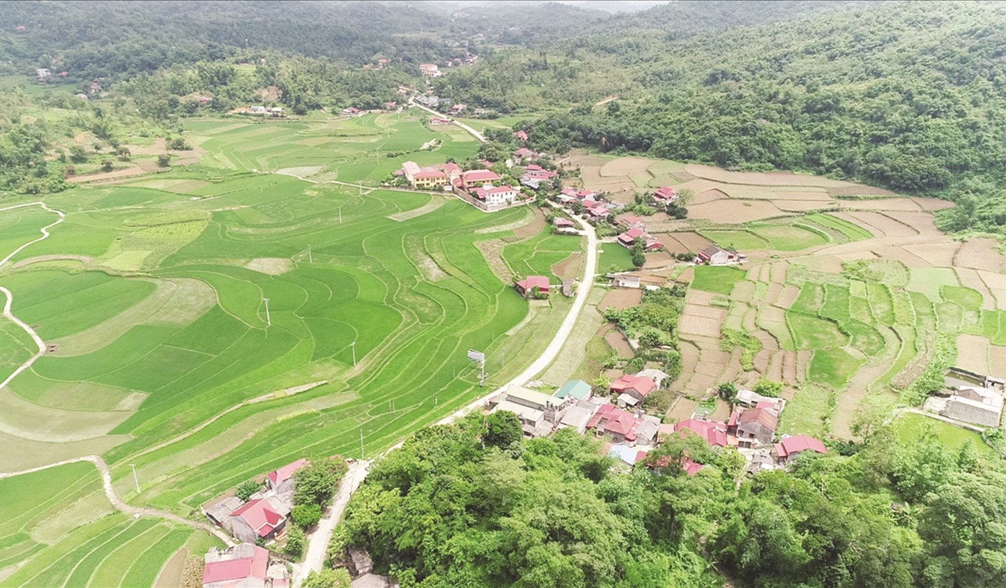 Nguồn lực các Chương trình MTQG tác động trực tiếp đến tình hình phát triển kinh tế - xã hội ở địa bàn miền núi, vùng đồng bào DTTS. (Trong ảnh: Thôn Khòn Cải, xã nông thôn mới Liên Hội, huyện Văn Quan nhìn từ trên cao)