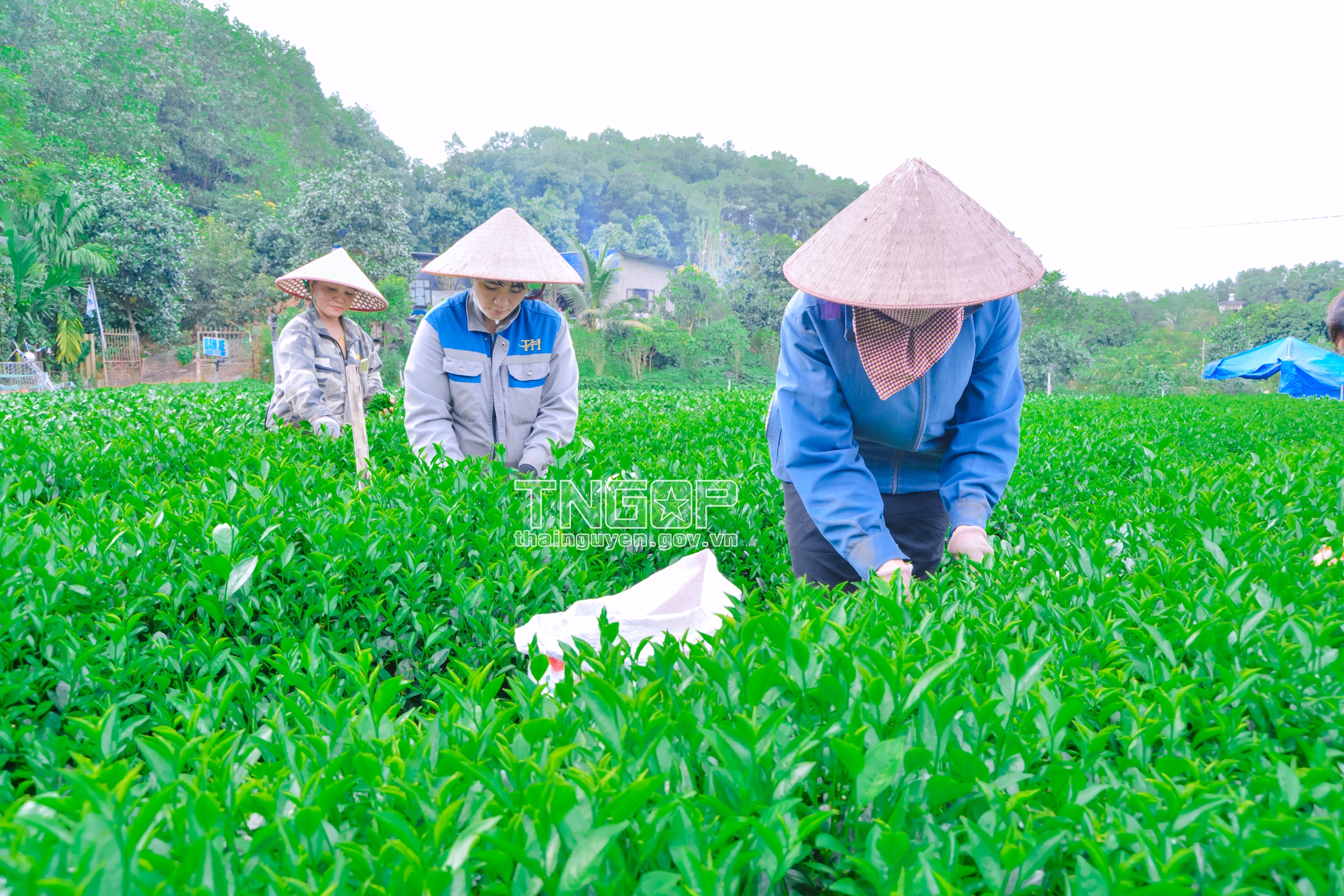 Người dân Làng nghề chè Trung Thành 2, xã Vô Tranh (Phú Lương) thu hái chè VietGAP