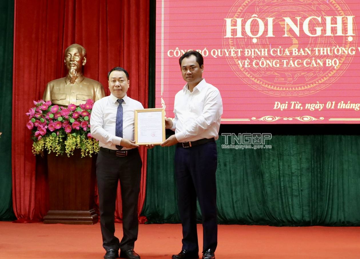 Chiều 1/7, Huyện uỷ Đại Từ tổ chức Hội nghị công bố Quyết định của Ban Thường vụ Tỉnh ủy Thái Nguyên về công tác cán bộ. Dự Hội nghị có đồng chí Trịnh Việt Hùng, Ủy viên dự khuyết BCH Trung ương Đảng, Phó Bí thư Tỉnh ủy, Chủ tịch UBND tỉnh; đồng chí Vũ Duy Hoàng, Ủy viên Ban Thường vụ, Trưởng Ban Tuyên giáo Tỉnh ủy.