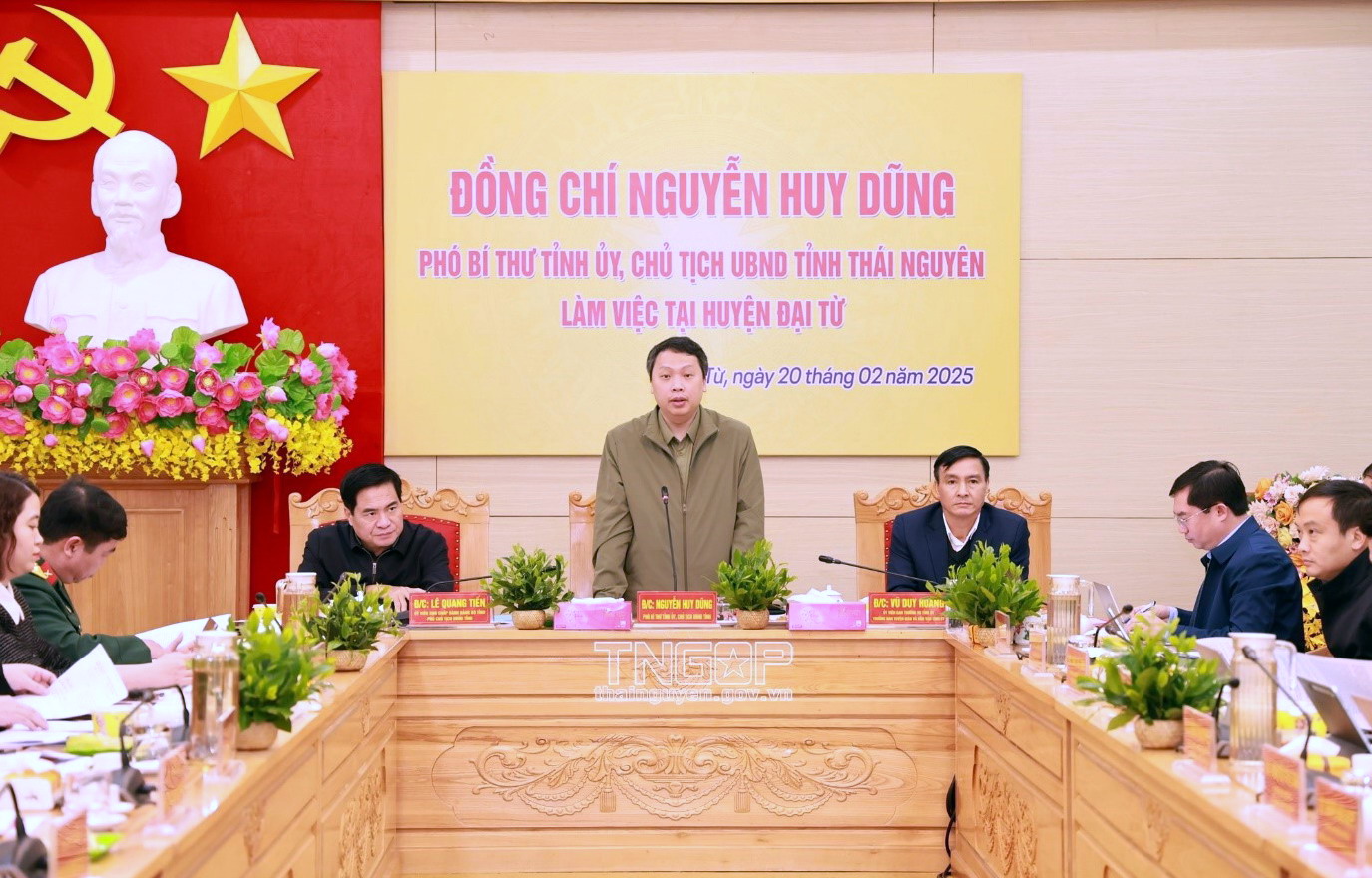 Sáng 20/2, Đoàn công tác của tỉnh do đồng chí Nguyễn Huy Dũng, Phó Bí thư Tỉnh ủy, Chủ tịch UBND tỉnh làm Trưởng Đoàn đã đến khảo sát thực tế và làm việc với lãnh đạo huyện Đại Từ về các mục tiêu, nhiệm vụ phát triển kinh tế - xã hội năm 2025.
