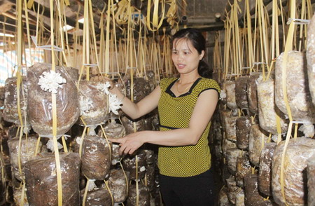 Mô hình trồng nấm của gia đình chị Đặng Thị Châm, hội viên Hội Phụ nữ thôn 5, xã Phú Tiến (Định Hóa).