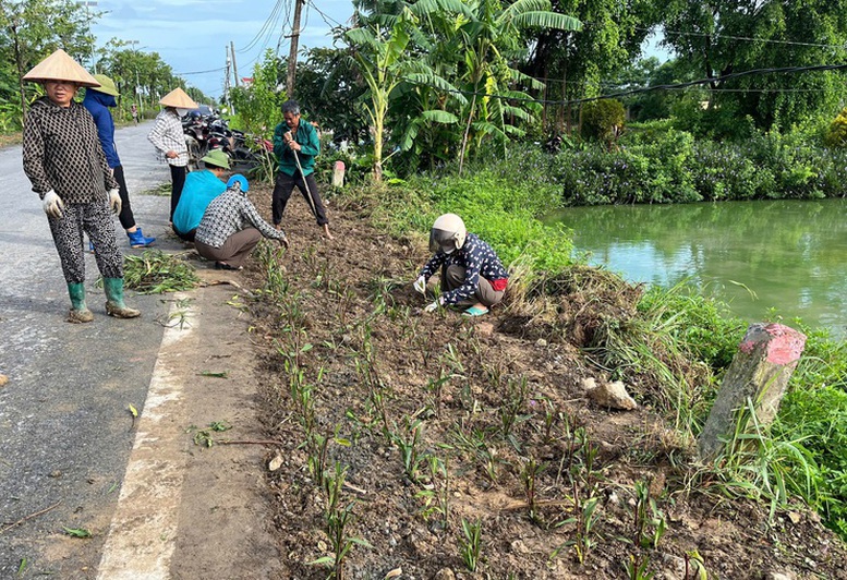 Bà con nông dân Ứng Hoà trồng hoa trên các tuyến đường nông thôn. Ảnh: Thuỳ Ninh