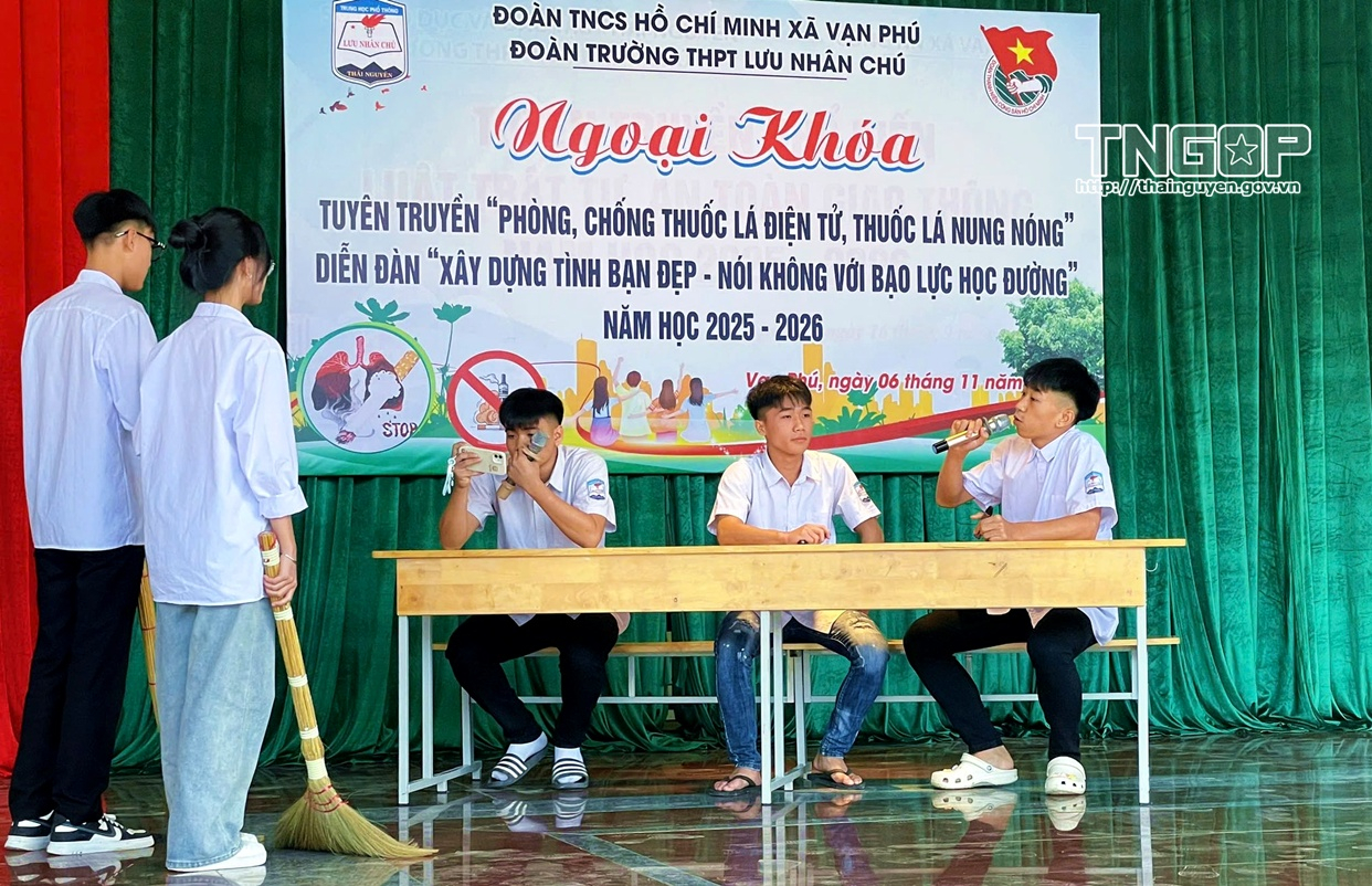 Nhằm tăng cường tuyên truyền, nâng cao nhận thức của học sinh, cán bộ, giáo viên về tác hại của thuốc lá, Trường THPT Tức Tranh (xã Vô Tranh) và Trung tâm Giáo dục thường xuyên Thái Nguyên đã tổ chức Cuộc thi “Rung chuông vàng” tuyên truyền về phòng, chống tác hại của thuốc lá cho học sinh năm học 2025 - 2026. Cuộc thi thu hút đông đảo học sinh tham gia, tạo hiệu ứng tích cực, góp phần nâng cao nhận thức của học sinh về tác hại của thuốc lá và thuốc lá thế hệ mới, từ đó xây dựng môi trường học đường lành mạnh, an toàn.