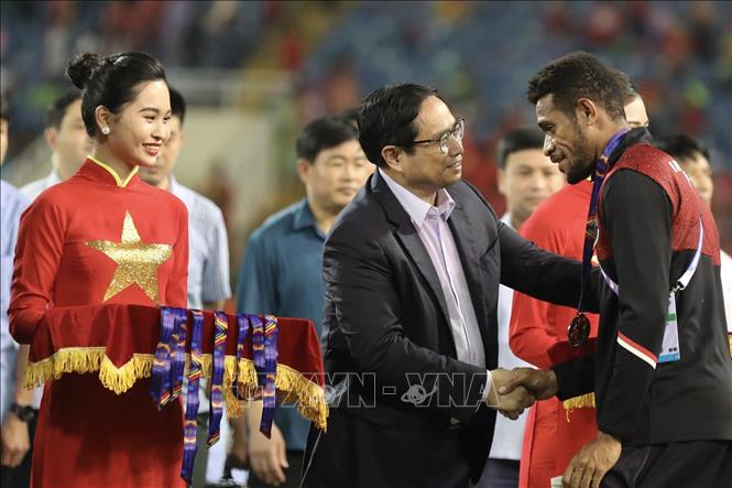 Tối 22/5, ngay sau khi Đội tuyển U23 Việt Nam giành chiến thắng 1-0 trước Đội tuyển U23 Thái Lan, bảo vệ thành công ngôi Vô địch môn bóng đá Nam tại Đại hội thể thao Đông Nam Á (SEA Games 31), Chủ tịch nước Nguyễn Xuân Phúc, Thủ tướng Phạm Minh Chính, Chủ tịch Quốc hội Vương Đình Huệ và Ủy viên Bộ Chính trị, Thường trực Ban Bí thư Võ Văn Thưởng đã xuống sân chúc mừng và trao Huy chương tặng Đội tuyển U23 Indonesia, Đội tuyển U23 Thái Lan và Đội tuyển U23 Việt Nam.