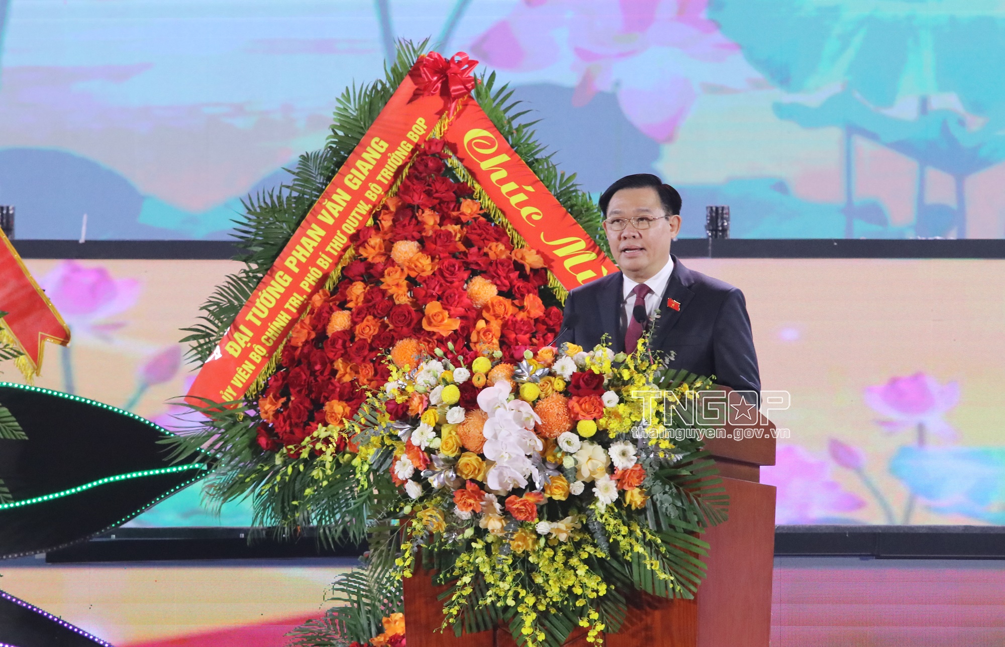 Thay mặt lãnh đạo Đảng, Nhà nước, tôi nhiệt liệt chúc mừng và biểu dương sự cố gắng, nỗ lực phấn đấu và những kết quả, thành tựu mà Đảng bộ, Chính quyền và Nhân dân tỉnh Thái Nguyên đã đạt được trong suốt chặng đường 60 năm qua.
