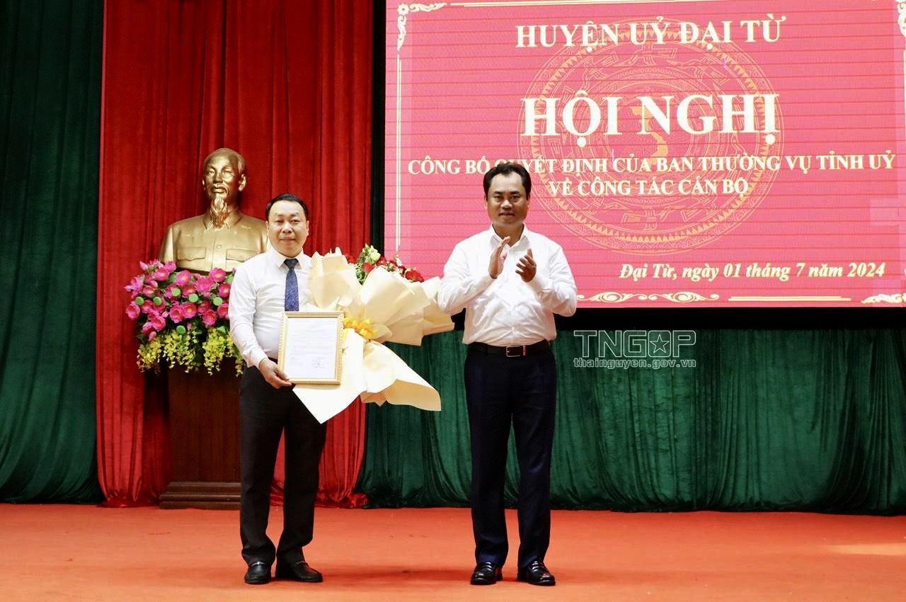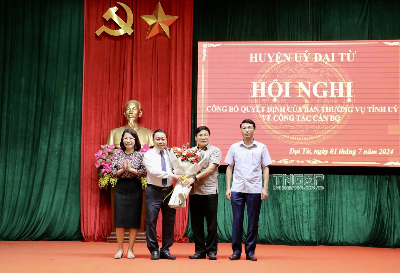 Chiều 1/7, Huyện uỷ Đại Từ tổ chức Hội nghị công bố Quyết định của Ban Thường vụ Tỉnh ủy Thái Nguyên về công tác cán bộ. Dự Hội nghị có đồng chí Trịnh Việt Hùng, Ủy viên dự khuyết BCH Trung ương Đảng, Phó Bí thư Tỉnh ủy, Chủ tịch UBND tỉnh; đồng chí Vũ Duy Hoàng, Ủy viên Ban Thường vụ, Trưởng Ban Tuyên giáo Tỉnh ủy.