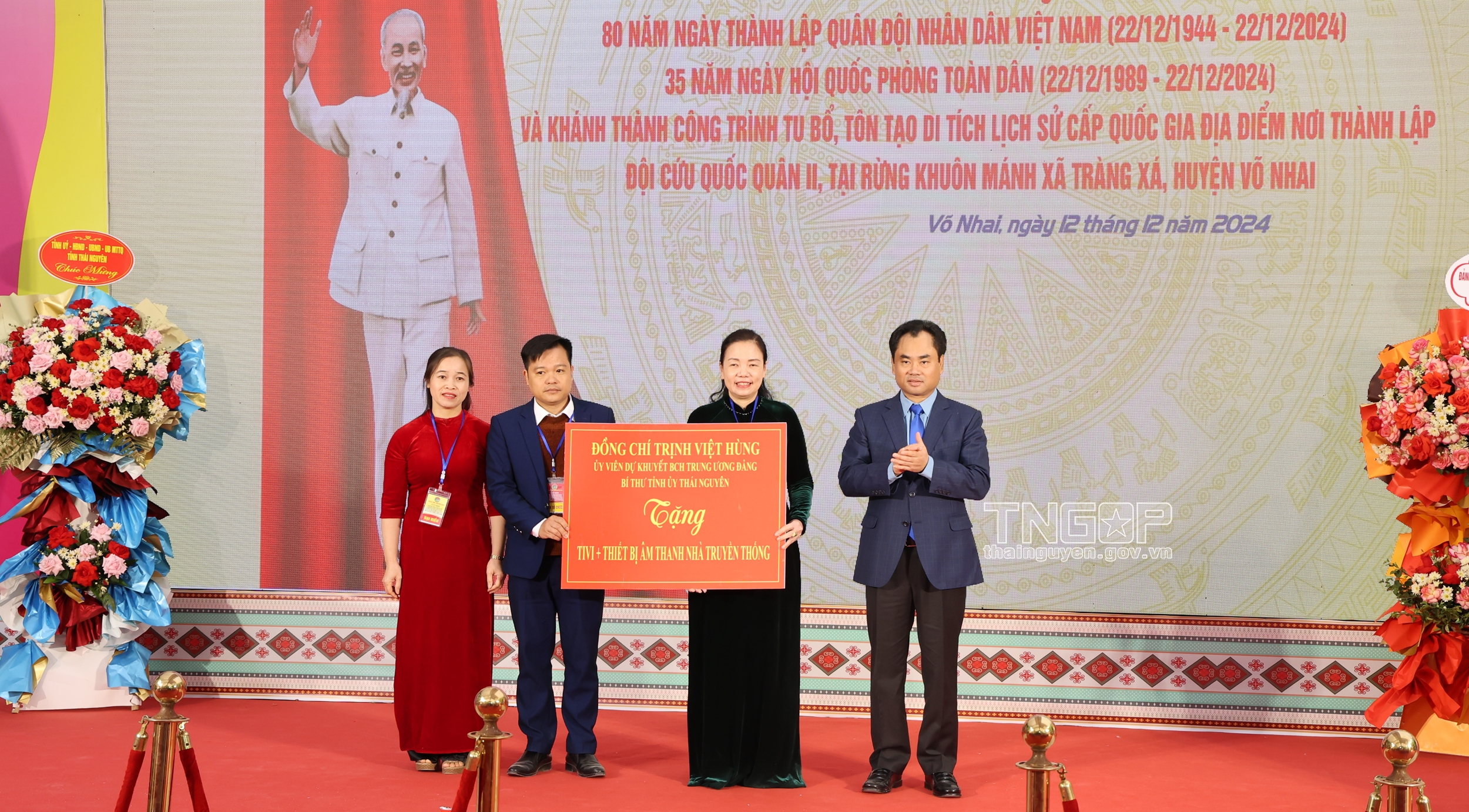 Nhân dịp này, Bộ Quốc phòng đã trao tặng kinh phí hỗ trợ xây dựng, sửa chữa 2 nhà văn hóa của xóm Hợp Nhất và xóm Thắng Lợi, xã Tràng Xá; Quân khu 1 tặng kinh phí hỗ trợ trồng cây xanh Di tích lịch sử quốc gia địa điểm thành lập Đội Cứu Quốc quân II; Công ty cổ phần Đầu tư xây dựng và Khai thác khoáng sản Thăng Long trao tặng kinh phí hỗ trợ xóa nhà tạm, nhà dột nát cho các hộ nghèo, hộ cận nghèo xã Tràng Xá.