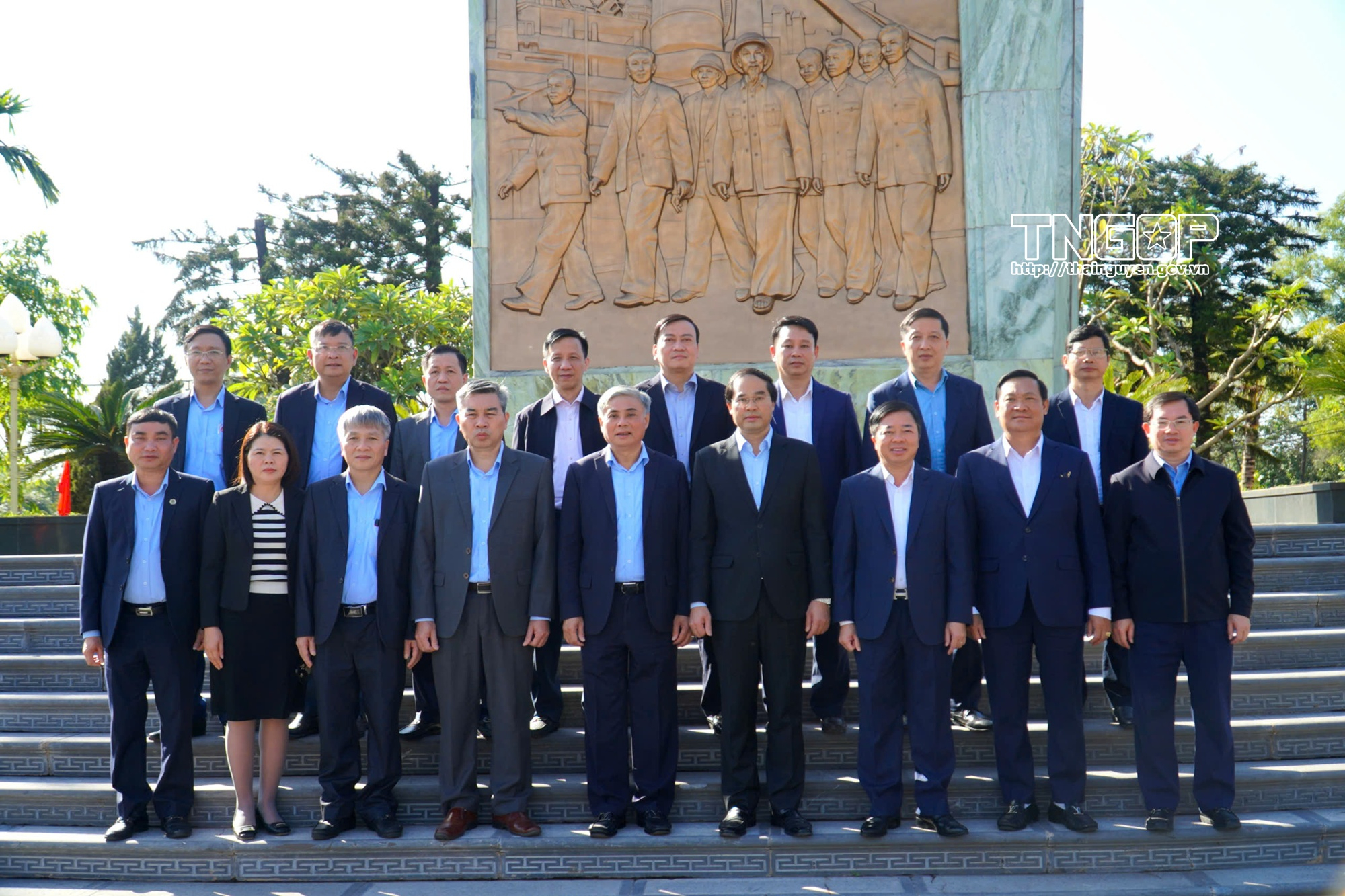 Đại biểu chụp ảnh lưu niệm tại Khu Di tích lịch sử quốc gia địa điểm lưu niệm Chủ tịch Hồ Chí Minh về thăm khu Gang Thép Thái Nguyên