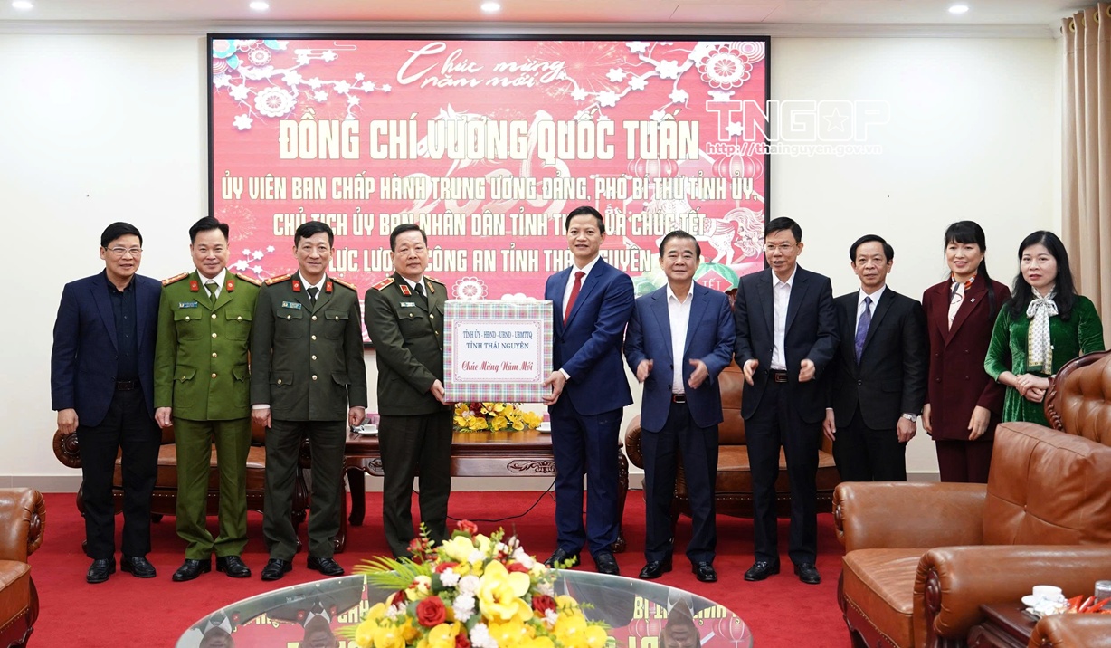 Nhân dịp chuẩn bị đón tết Nguyên đán Bính Ngọ 2026, sáng 12/2, đồng chí Vương Quốc Tuấn, Ủy viên Ban Chấp hành Trung ương Đảng, Phó Bí thư Tỉnh ủy, Chủ tịch UBND tỉnh và Đoàn công tác của tỉnh đã đến thăm, chúc Tết cán bộ, chiến sĩ Công an tỉnh Thái Nguyên - đơn vị thực hiện nhiệm vụ trực Tết.