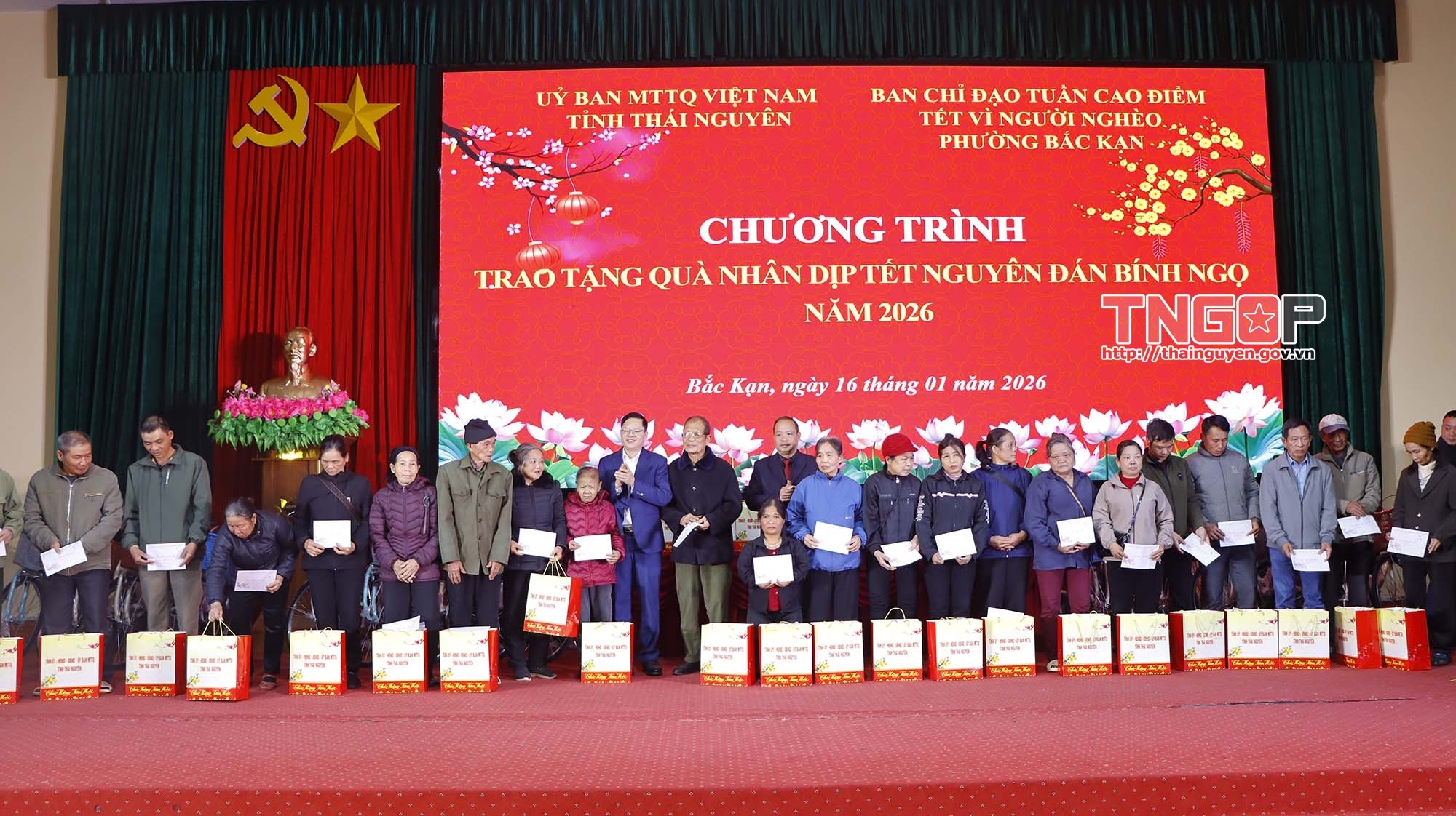 Nhân dịp tết Nguyên đán Bính Ngọ 2026, chiều 16/1, Đoàn công tác của tỉnh do đồng chí Đinh Quang Tuyên, Phó Bí thư Tỉnh ủy, Chủ tịch Ủy ban MTTQ tỉnh làm Trưởng đoàn đã trao quà Tết cho hộ nghèo, cận nghèo và học sinh có hoàn cảnh khó khăn trên địa bàn xã Tân Kỳ và phường Bắc Kạn.