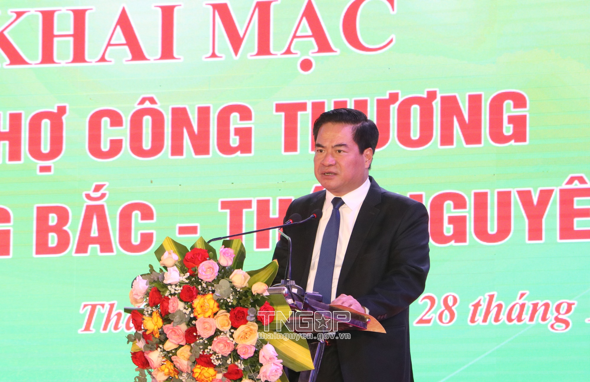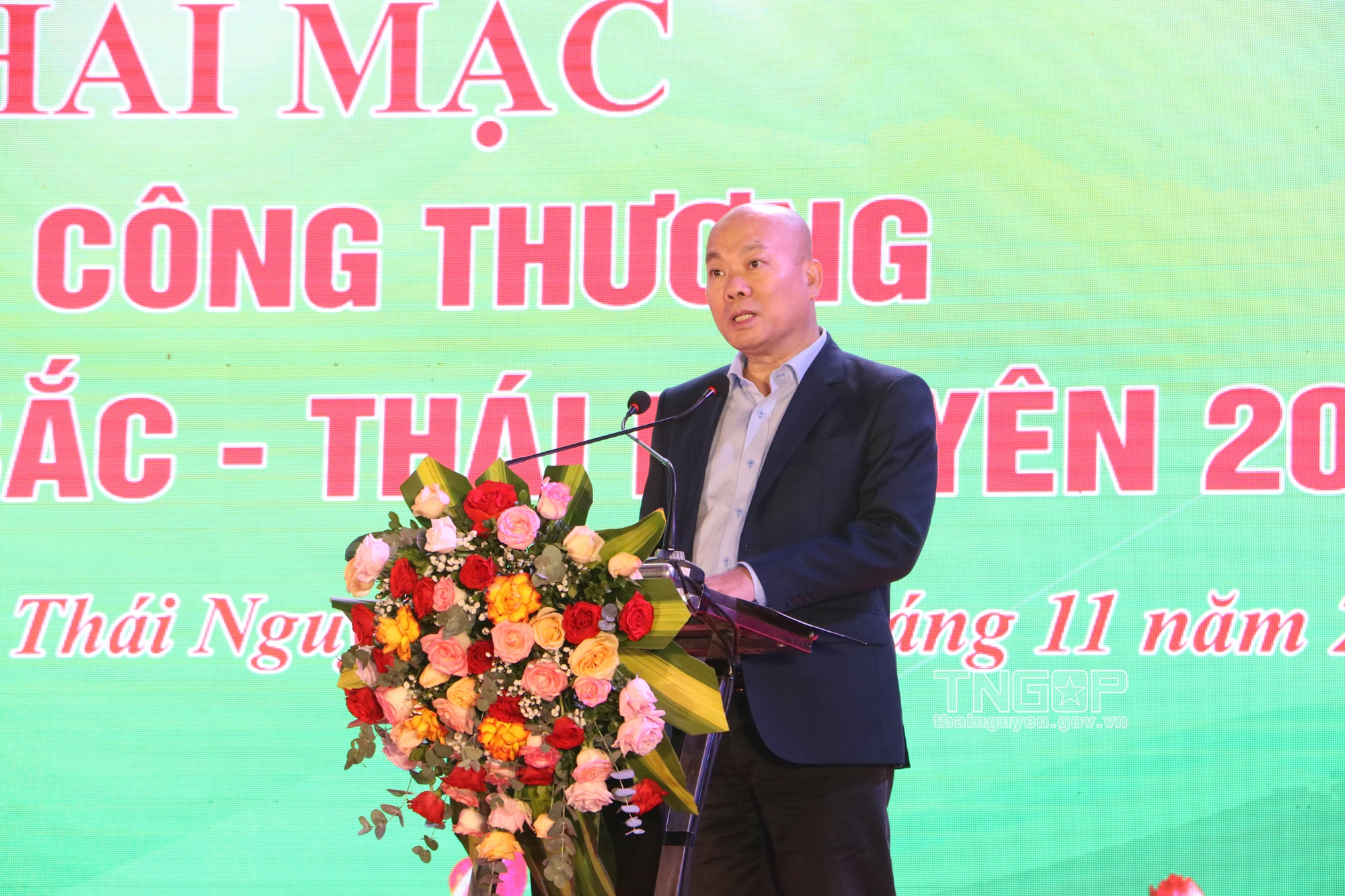 Đồng chí Lê Quang Tiến, Phó Chủ tịch UBND tỉnh Thái Nguyên phát biểu tại Khai mạc Hội chợ Công Thương khu vực Đông Bắc - Thái Nguyên 2024