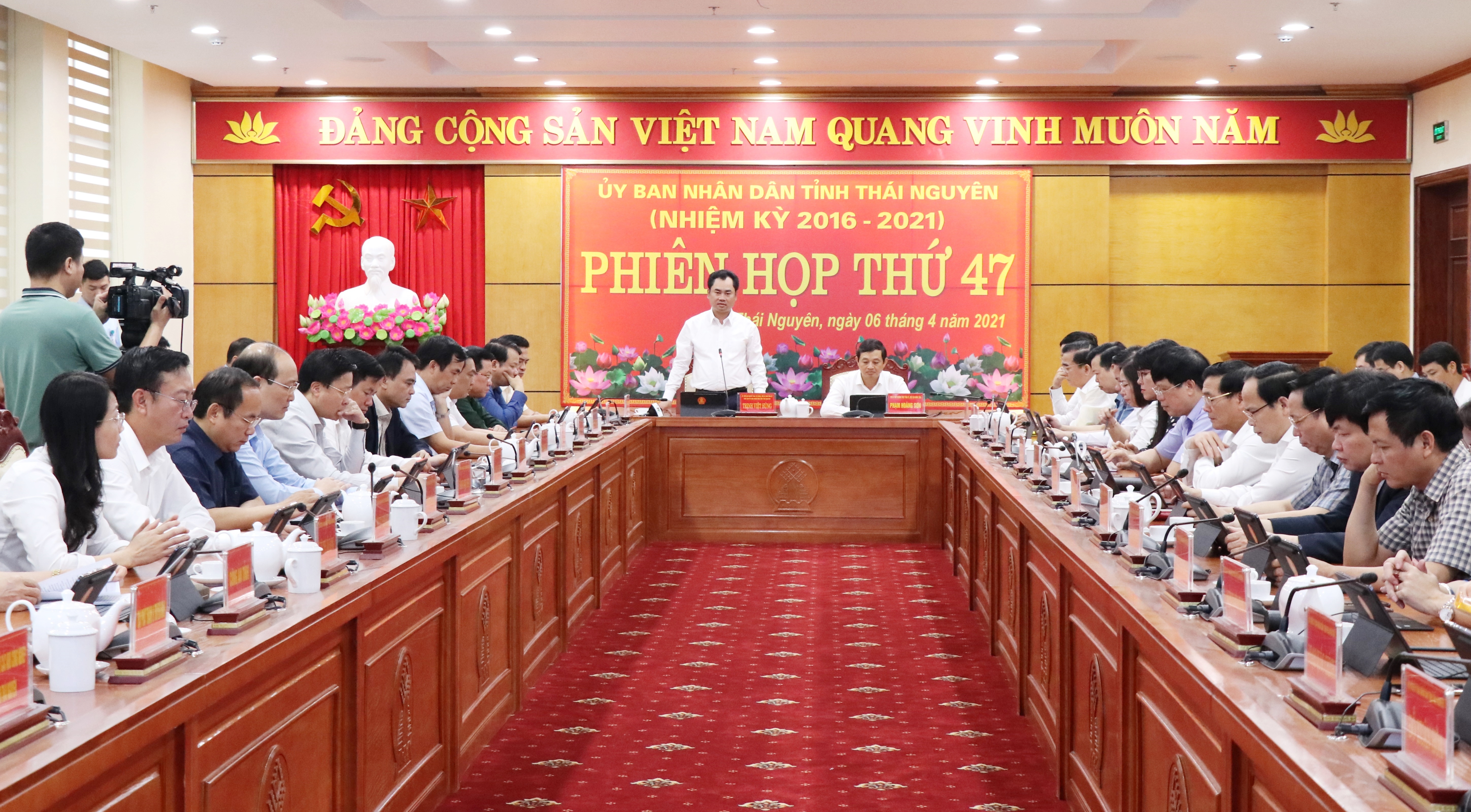 Chủ tịch UBND tỉnh Trịnh Việt Hùng chủ trì Phiên họp thứ 47 UBND tỉnh Thái Nguyên (phiên họp tháng 4) để thảo luận, đánh giá tình hình thực hiện nhiệm vụ, mục tiêu phát triển kinh tế - xã hội quý I/2021, đề ra nhiệm vụ trọng tâm quý II/2021 và cho ý kiến đối với một số nội dung quan trọng về phát triển kinh tế - xã hội