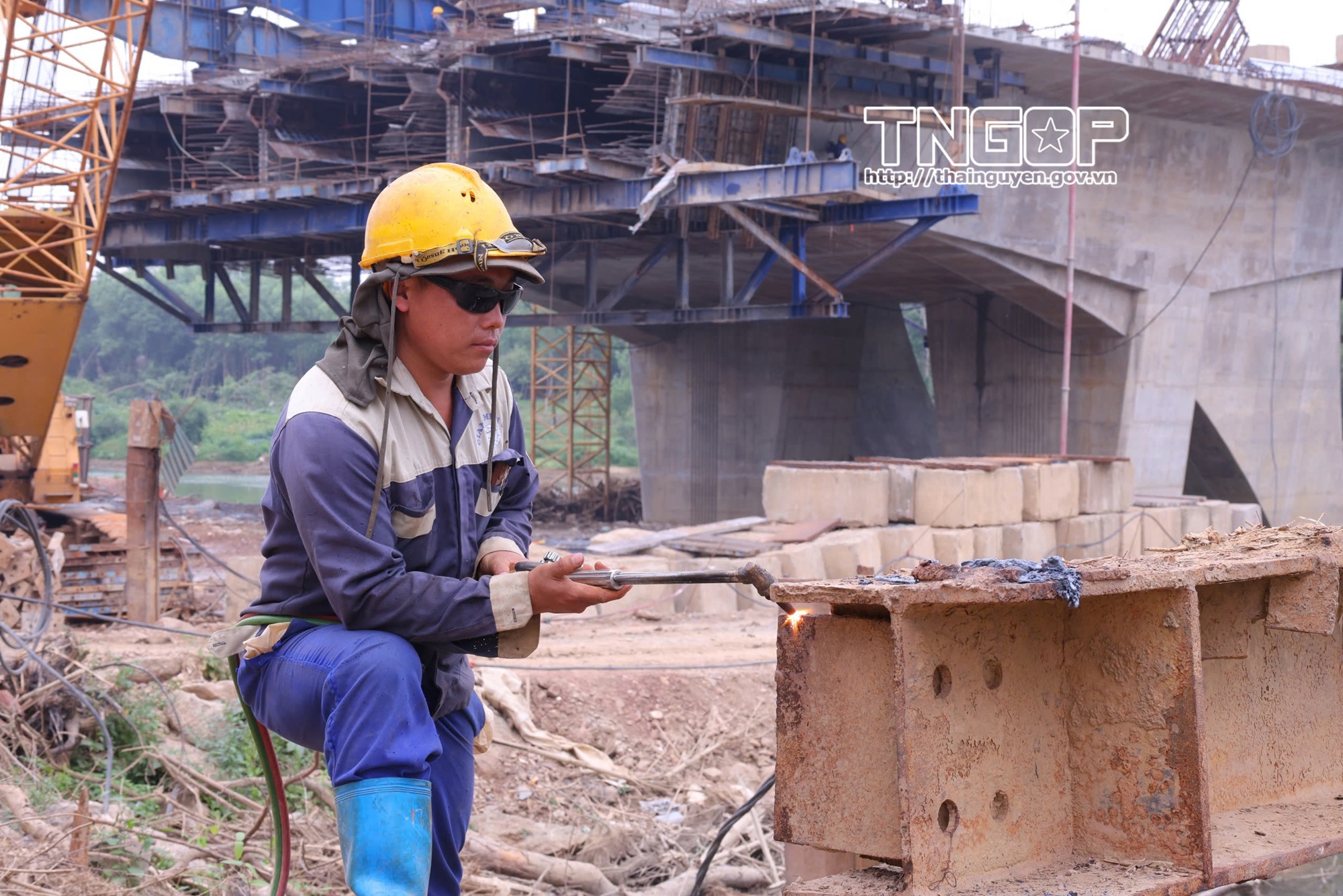 Những ngày giáp tết Nguyên đán Bính Ngọ, trên công trường cầu Quang Vinh 1 và cầu Quang Vinh 2, không khí lao động diễn ra khẩn trương, hối hả. Tiếng máy khoan, cần cẩu, tiếng công nhân tạo nên một nhịp làm việc không ngơi nghỉ giữa những ngày cuối năm.