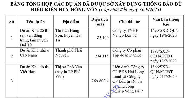 Sở Xây dựng công bố Danh sách các dự án đủ điều kiện bất động sản hình thành trong tương lai đưa vào kinh doanh cập nhật đến ngày 30/9/2024 (Phụ lục 03).
