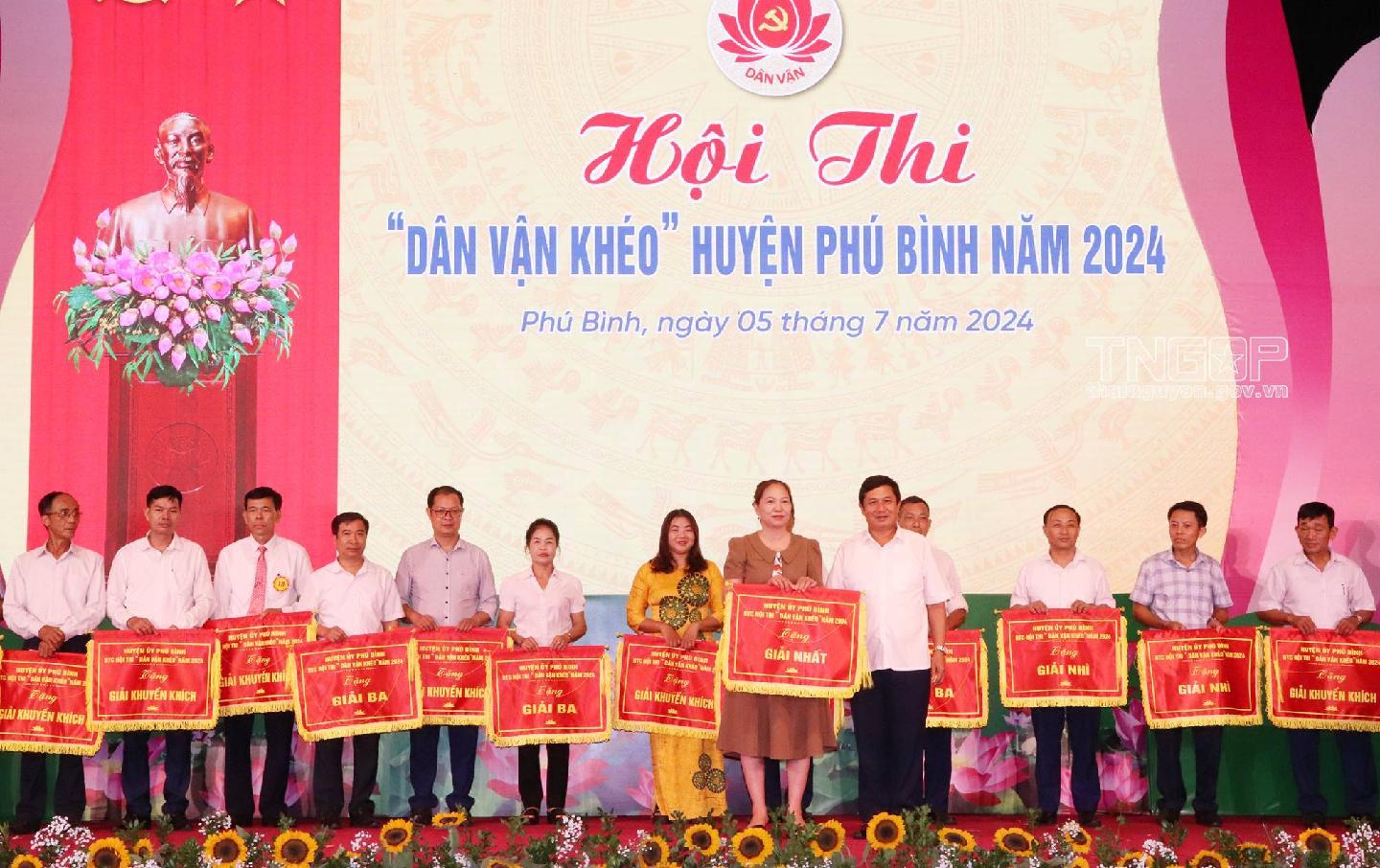 Tối 5/7, đồng chí Phạm Thái Hanh, Ủy viên Ban Thường vụ, Trưởng Ban Dân vận Tỉnh uỷ dự Hội thi Dân vận khéo huyện Phú Bình năm 2024. Tham gia Hội thi có 20 Đội thi xuất sắc đã được lựa chọn từ 203 Đội thi tại các xã, thị trấn.