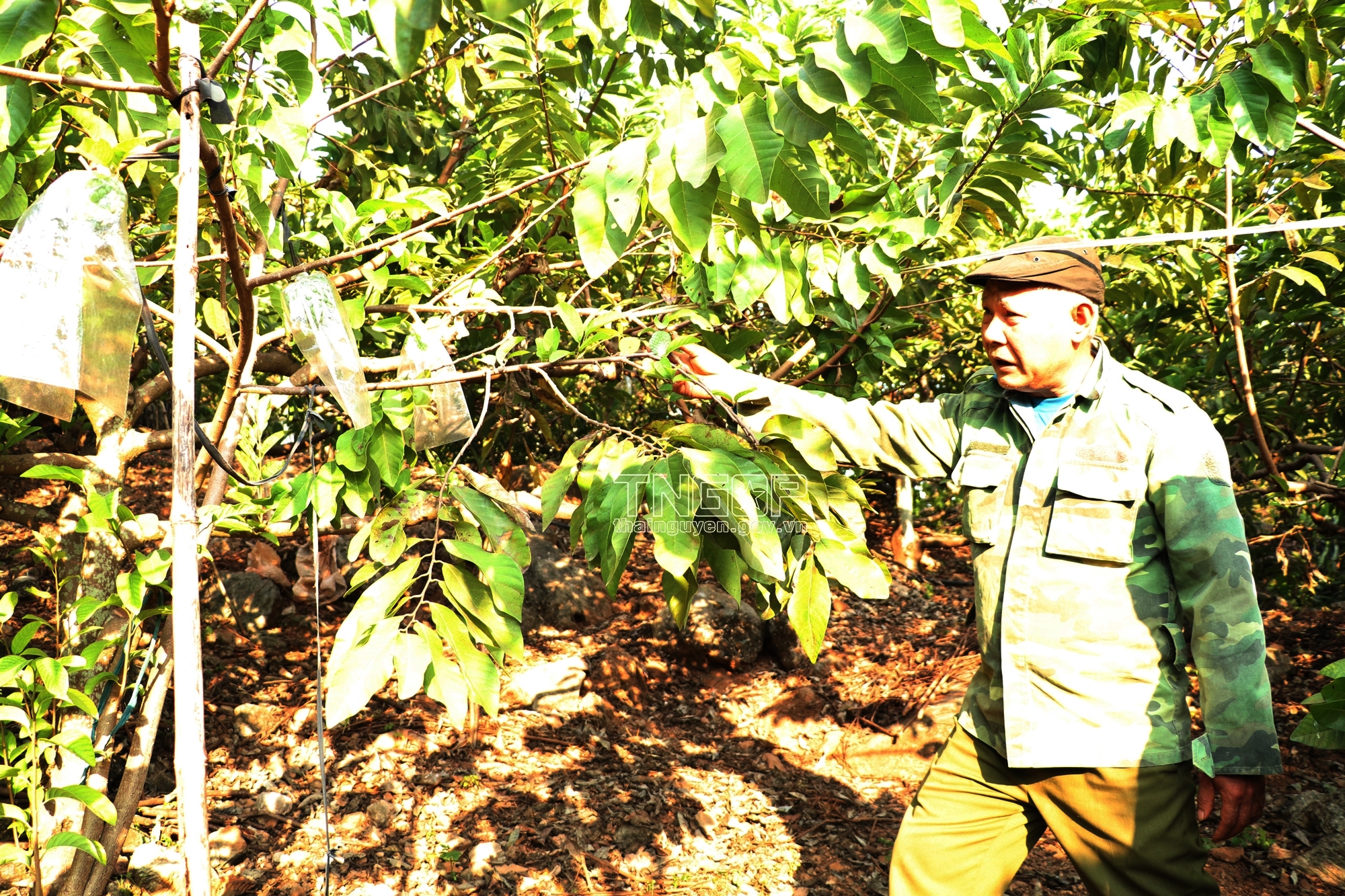 Ông Kiều Thượng Chất, xã Phú Thượng, huyện Võ Nhai chia sẻ về quy trình chăm sóc cây na rải vụ