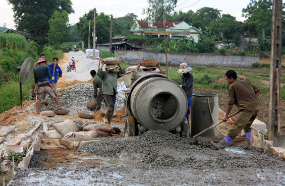 Xã Vinh Sơn, TP.Sông Công đã vận động người dân tự chặt cây cối, hiến đất, để xây dựng rãnh thoát nước, bó vỉa hè,