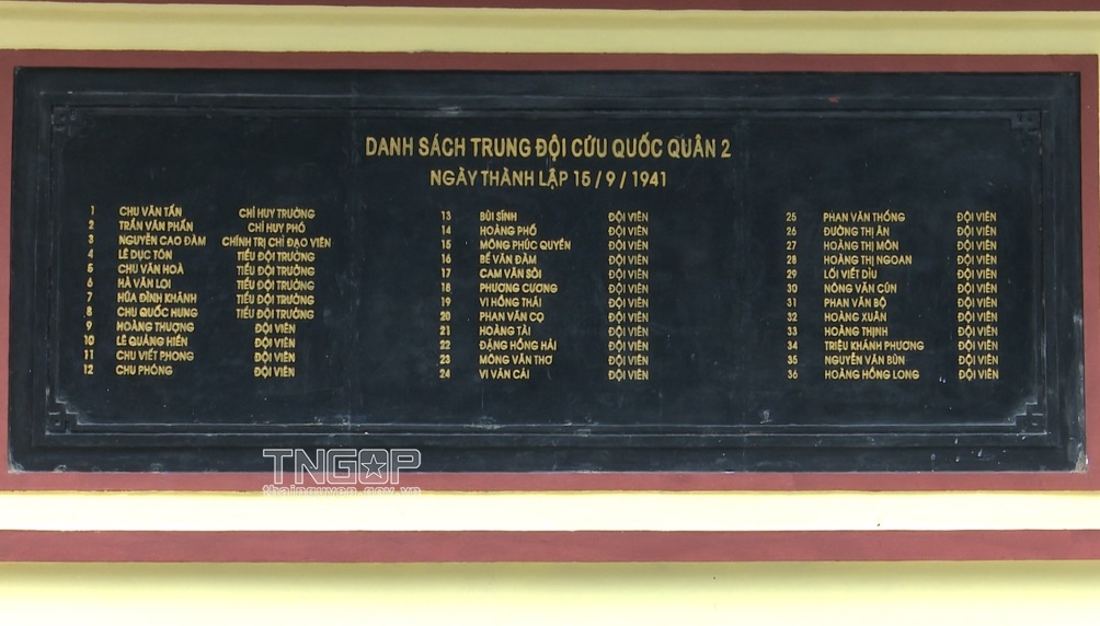 Lịch sử của Di tích và tên tuổi các cán bộ, đội viên Đội Cứu quốc quân II được khắc tạc trang trọng trên bia đá như khẳng định giá trị lịch sử trường tồn của Di tích