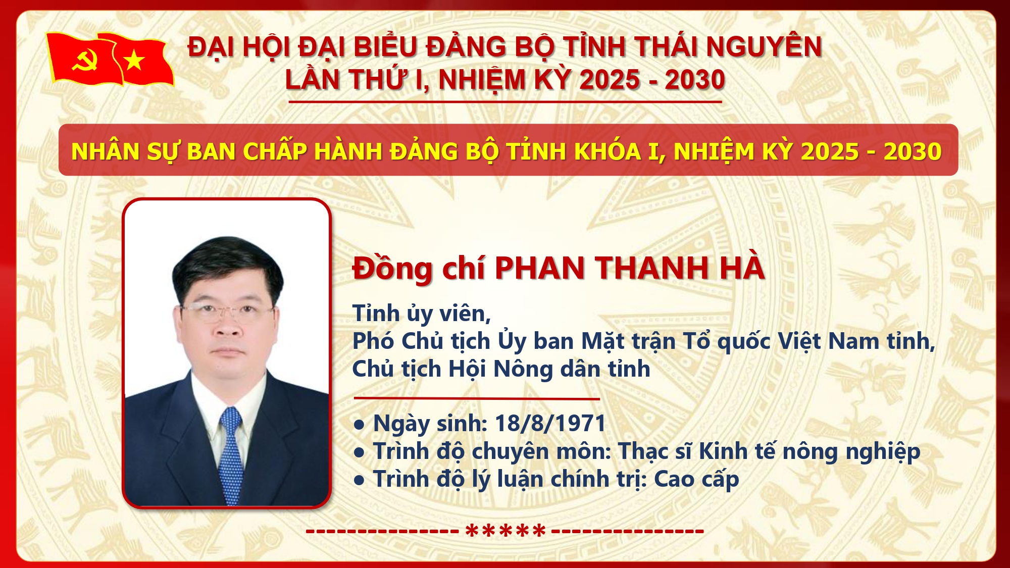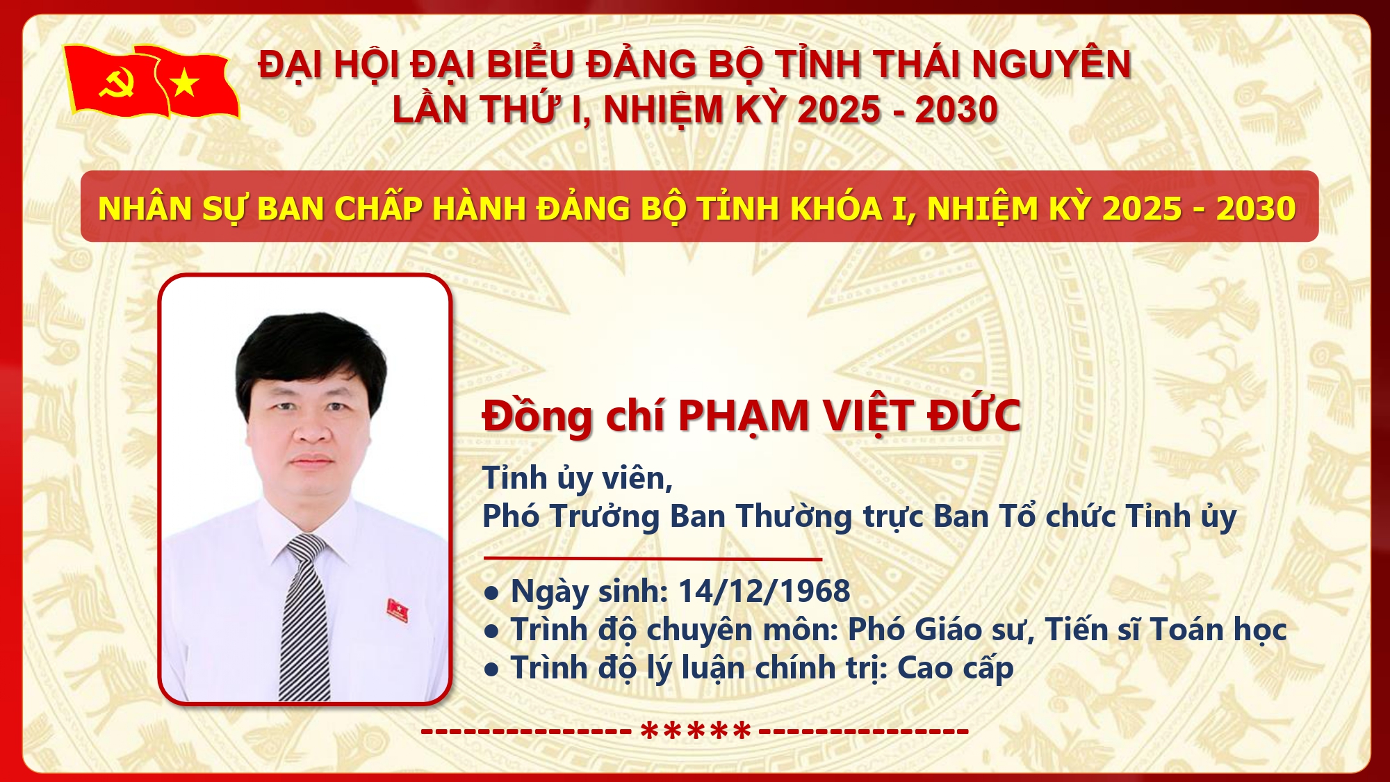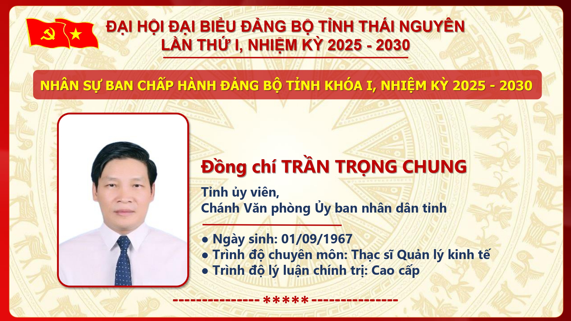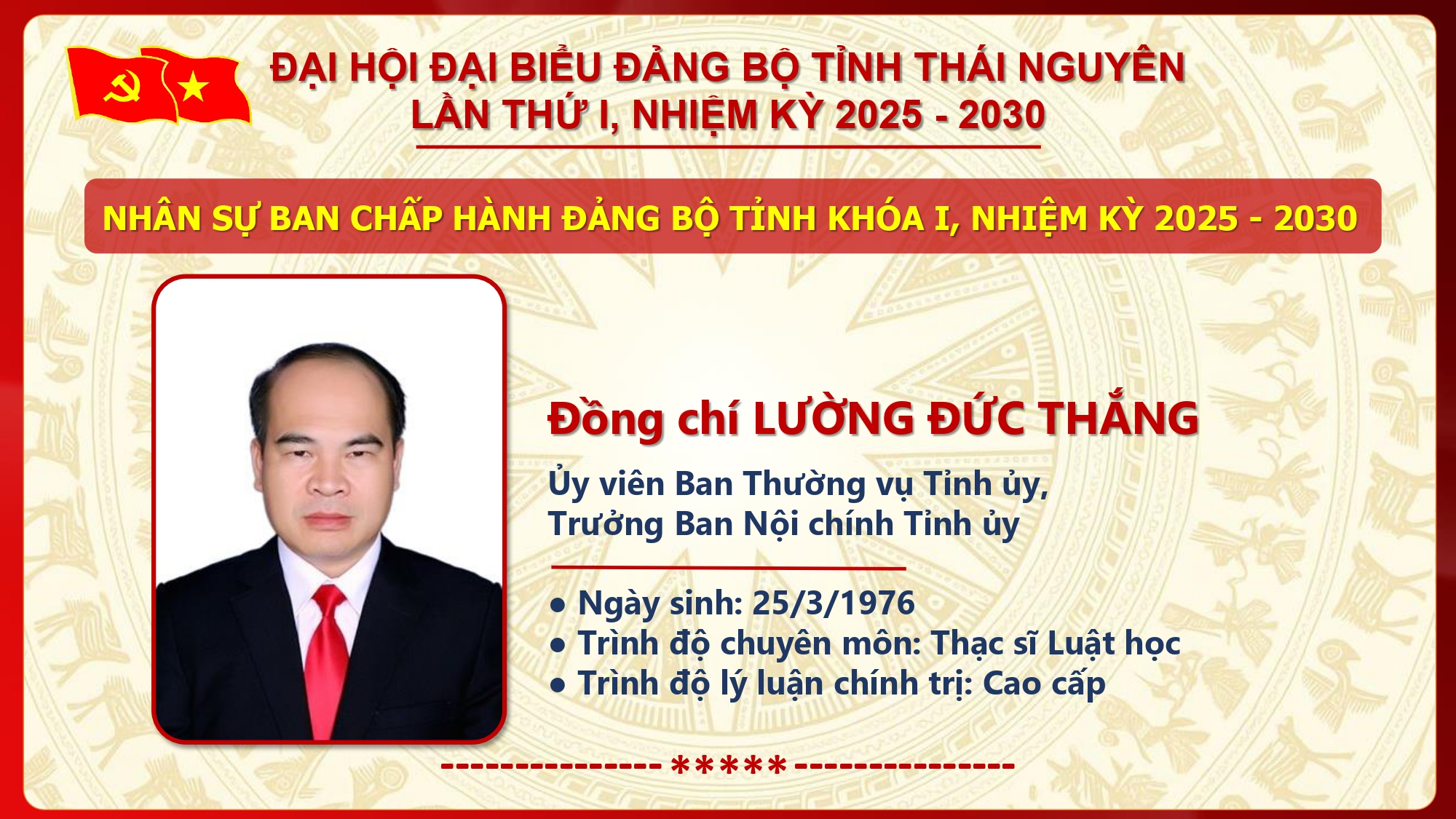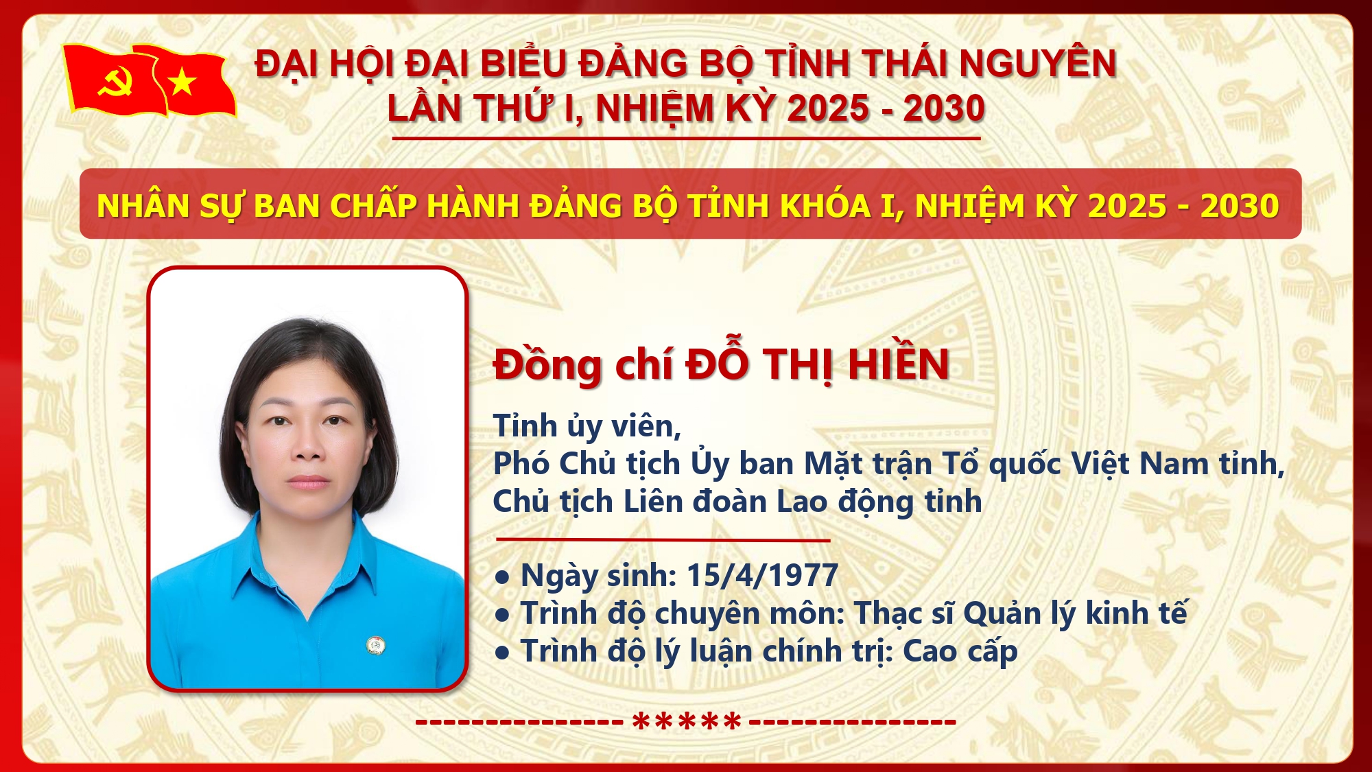 Danh sách Ban Chấp hành Đảng bộ tỉnh Thái Nguyên khóa I, nhiệm kỳ 2025 - 2030.