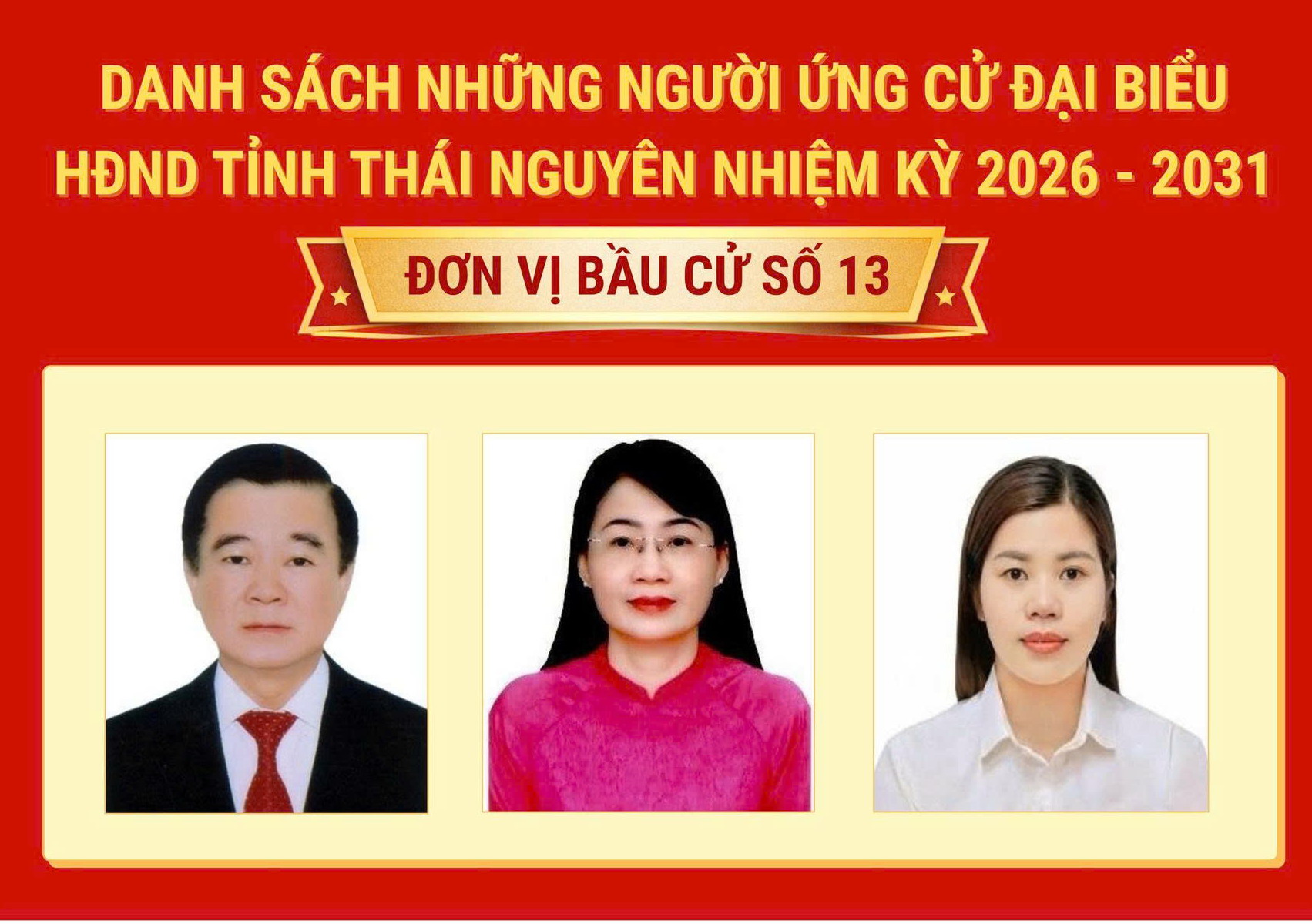 Danh sách những người ứng cử đại biểu HĐND tỉnh Thái Nguyên, nhiệm kỳ 2026 - 2031, Đơn vị bầu cử số 13