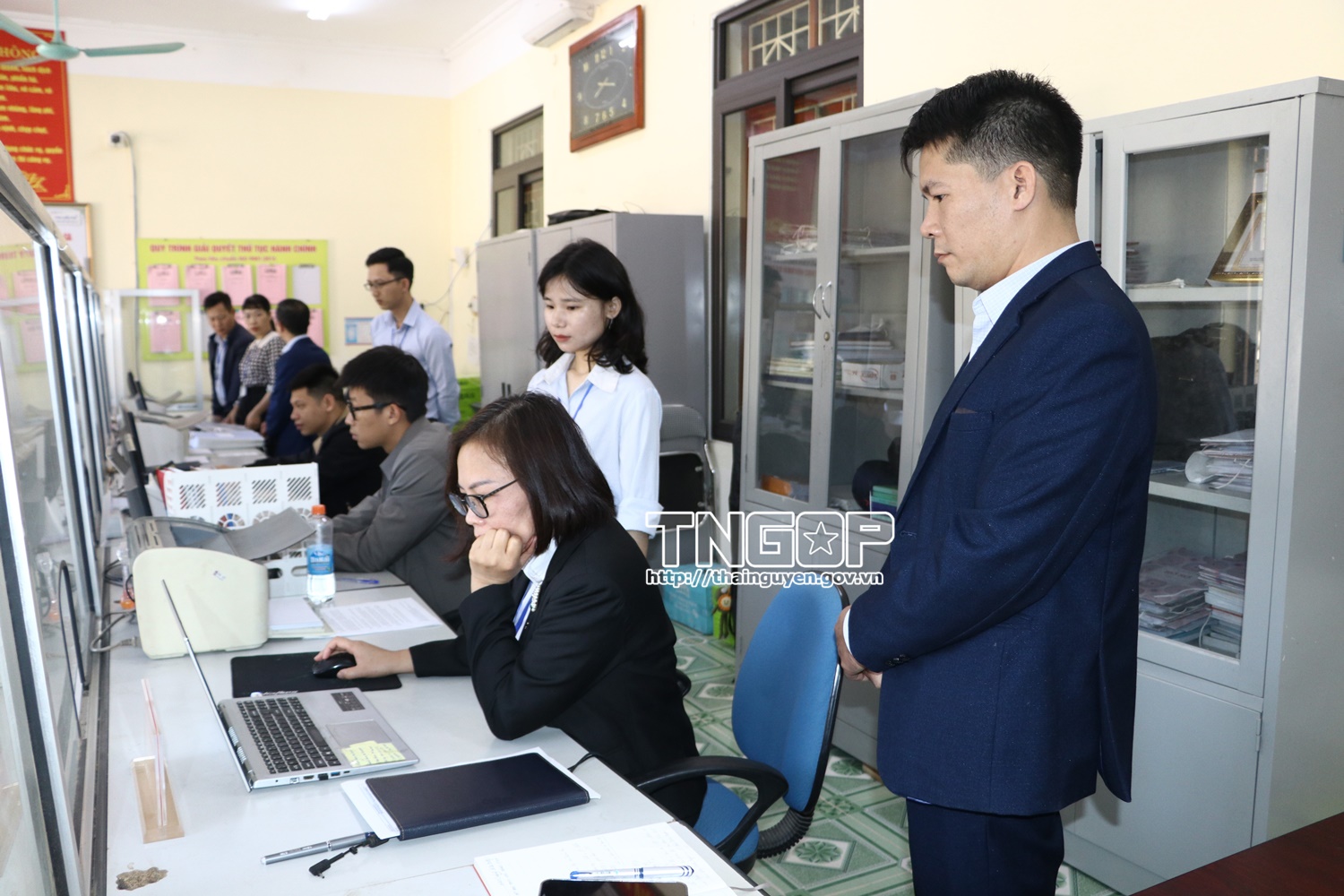 Đoàn kiểm tra công vụ, cải cách hành chính của tỉnh Thái Nguyên tiến hành kiểm tra tại UBND xã Thần Sa