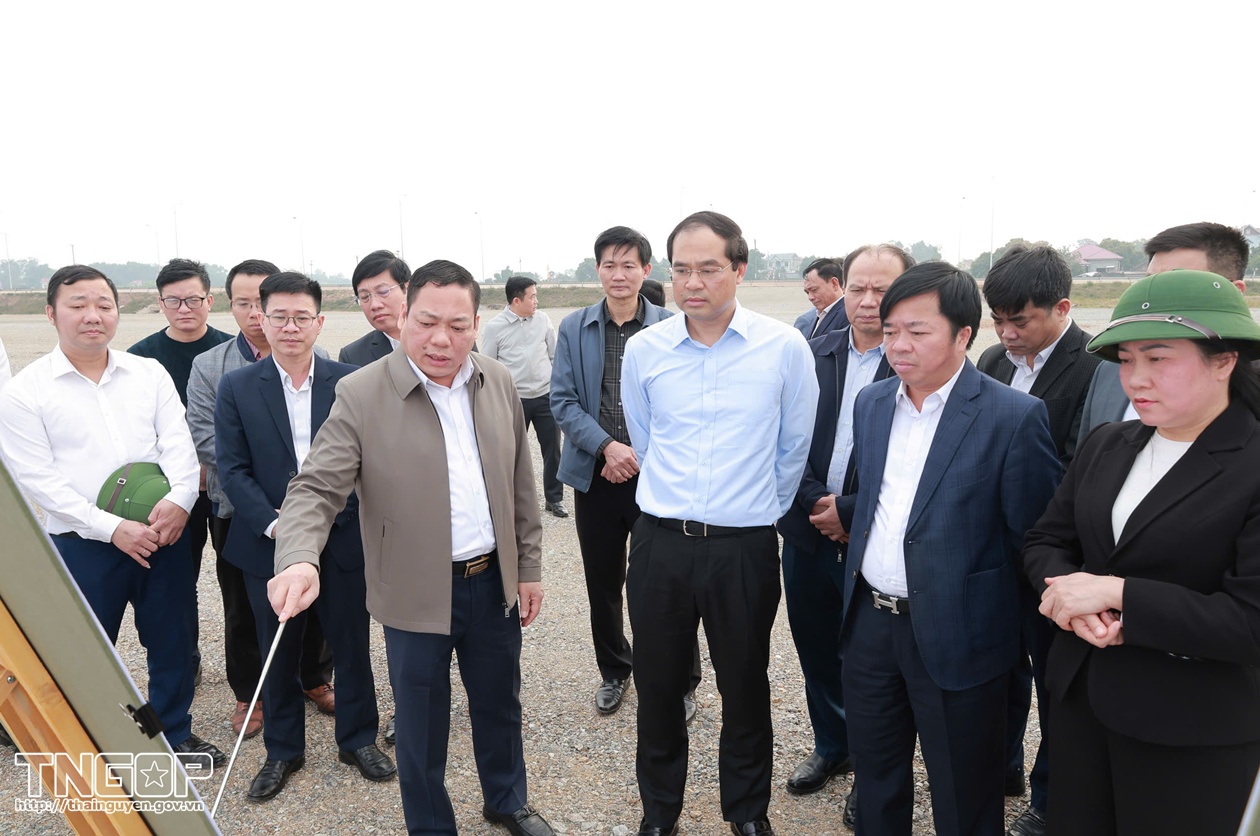 Đồng chí Bí thư Tỉnh ủy và các đồng chí lãnh đạo tỉnh kiểm tra thực địa tại Dự án Khu công nghiệp Sông Công II (giai đoạn 2)