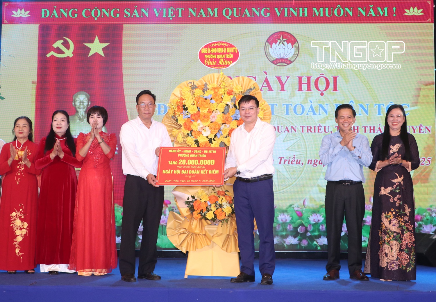 Nhân kỷ niệm 95 năm ngày Truyền thống MTTQ Việt Nam (18/11/1930 - 18/11/2025), sáng 8/11, đồng chí Đinh Quang Tuyên, Phó Bí thư Tỉnh ủy, Chủ tịch Ủy ban MTTQ tỉnh Thái Nguyên đã đến dự, chung vui Ngày hội Đại đoàn kết toàn dân tộc với Nhân dân Tổ dân phố (TDP) 1, phường Quan Triều.