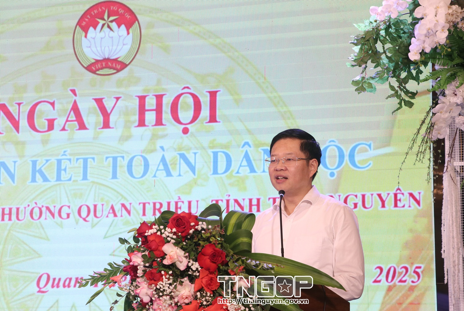 Đồng chí Đinh Quang Tuyên, Phó Bí thư Tỉnh ủy, Chủ tịch Ủy ban MTTQ tỉnh Thái Nguyên phát biểu tại Ngày hội