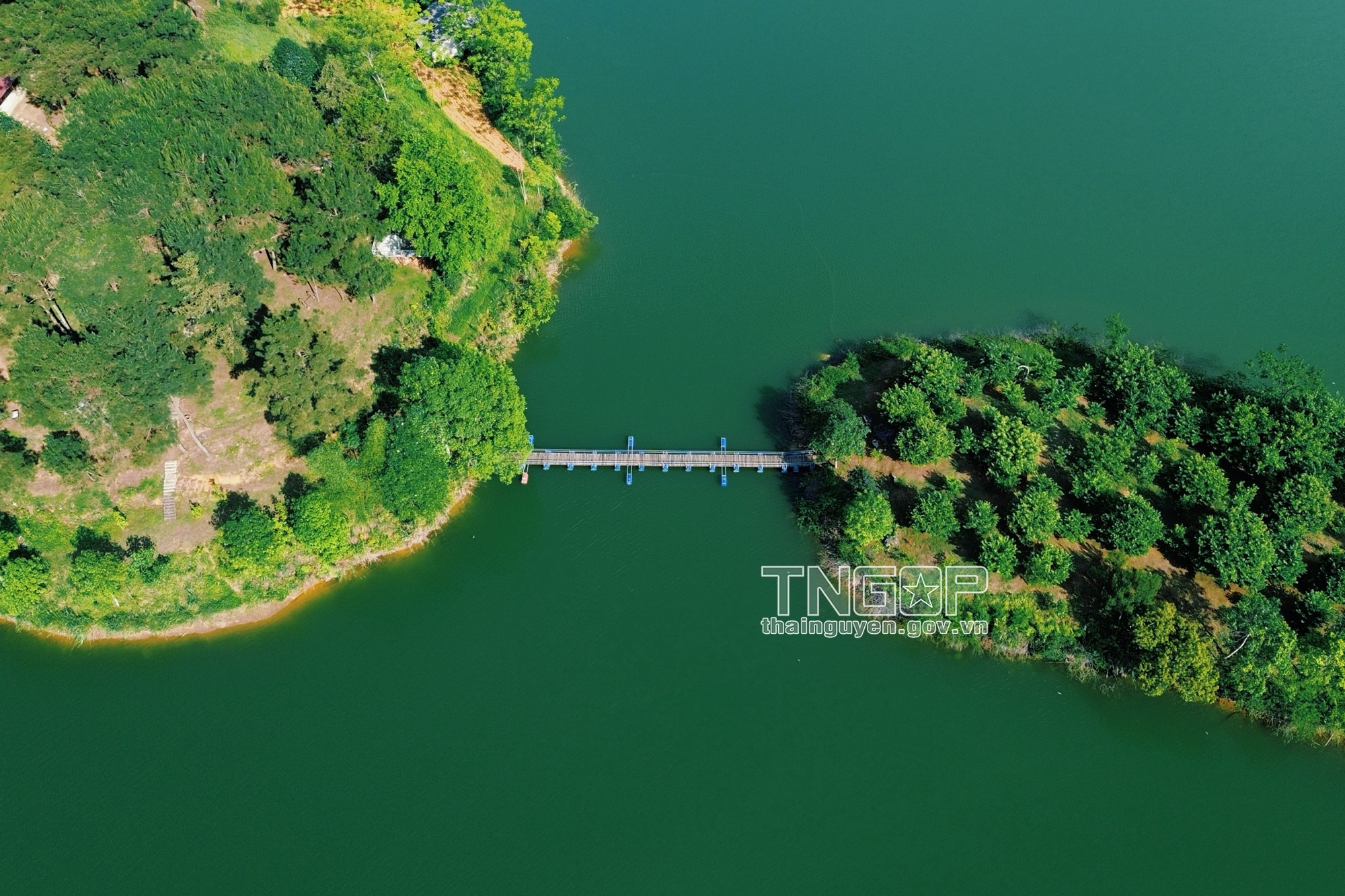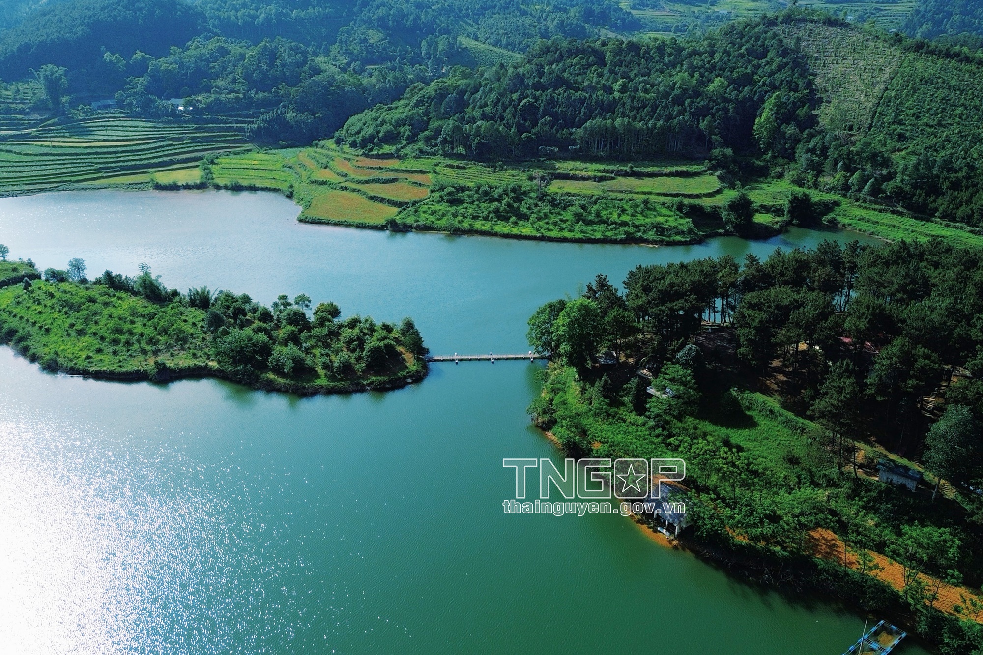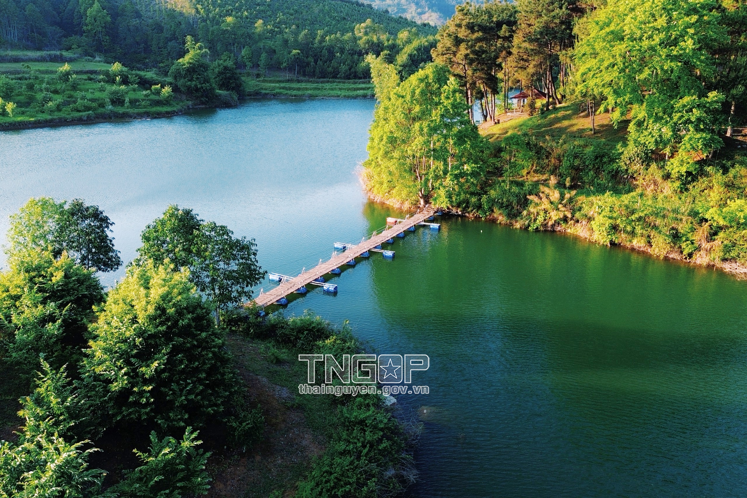 Giữa đại ngàn rừng thông xanh mướt, hồ Bản Chang thuộc xã Ngân Sơn, tỉnh Thái Nguyên hiện lên như một viên ngọc xanh biếc, phẳng lặng và dịu dàng.