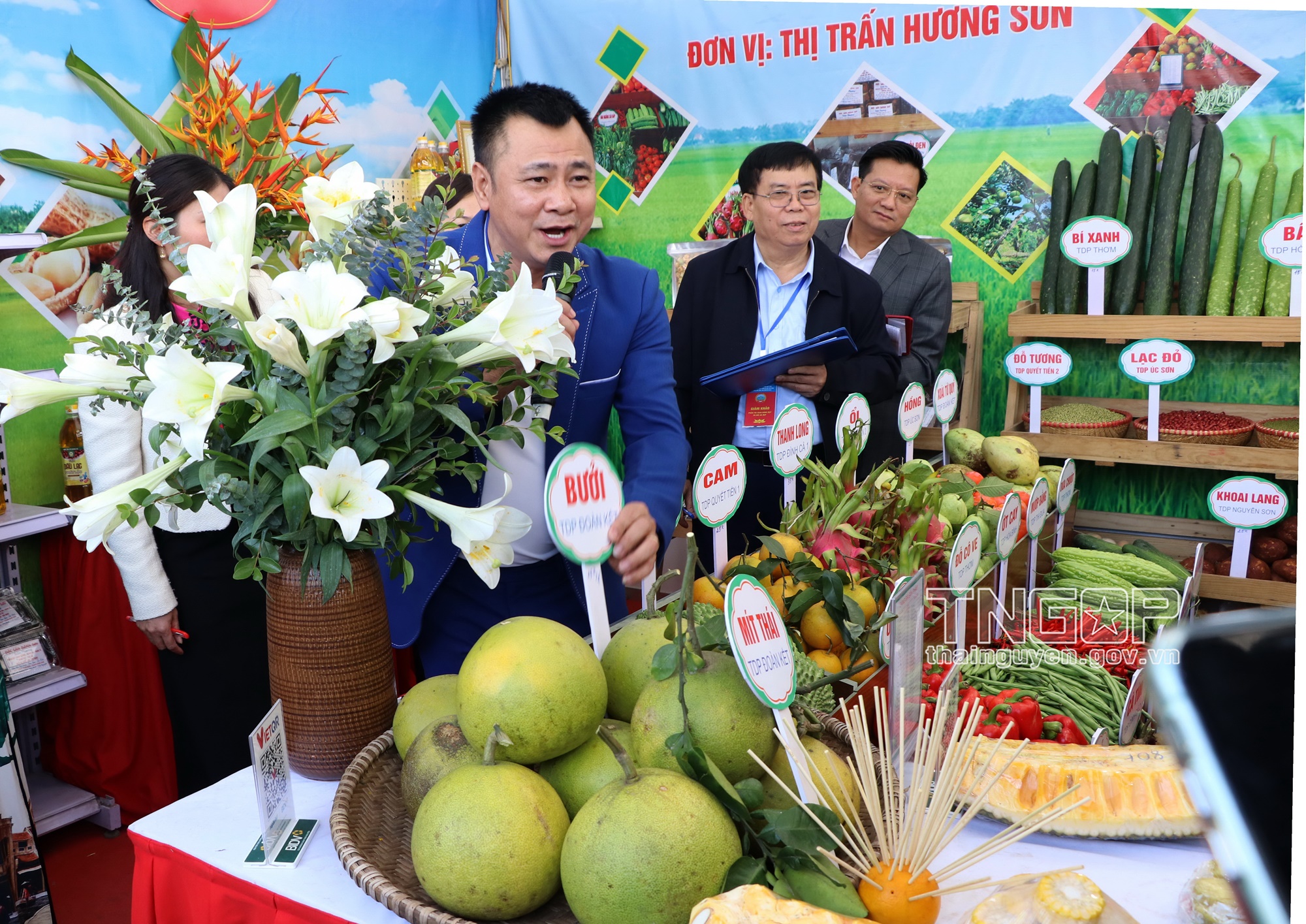 Gian hàng trưng bày sản phẩm nông nghiệp, sản phẩm OCOP của thị trấn Hương Sơn tại Hội chợ