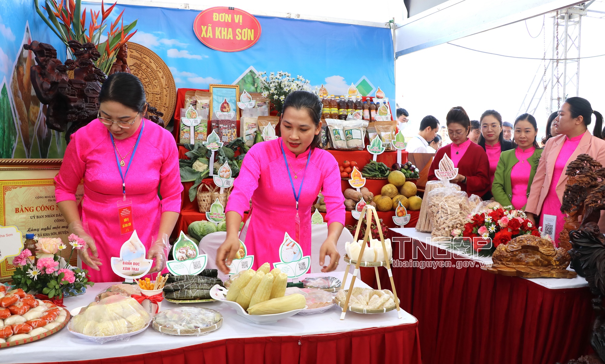 Gian hàng trưng bày sản phẩm nông nghiệp của xã Kha Sơn tham gia phần thi