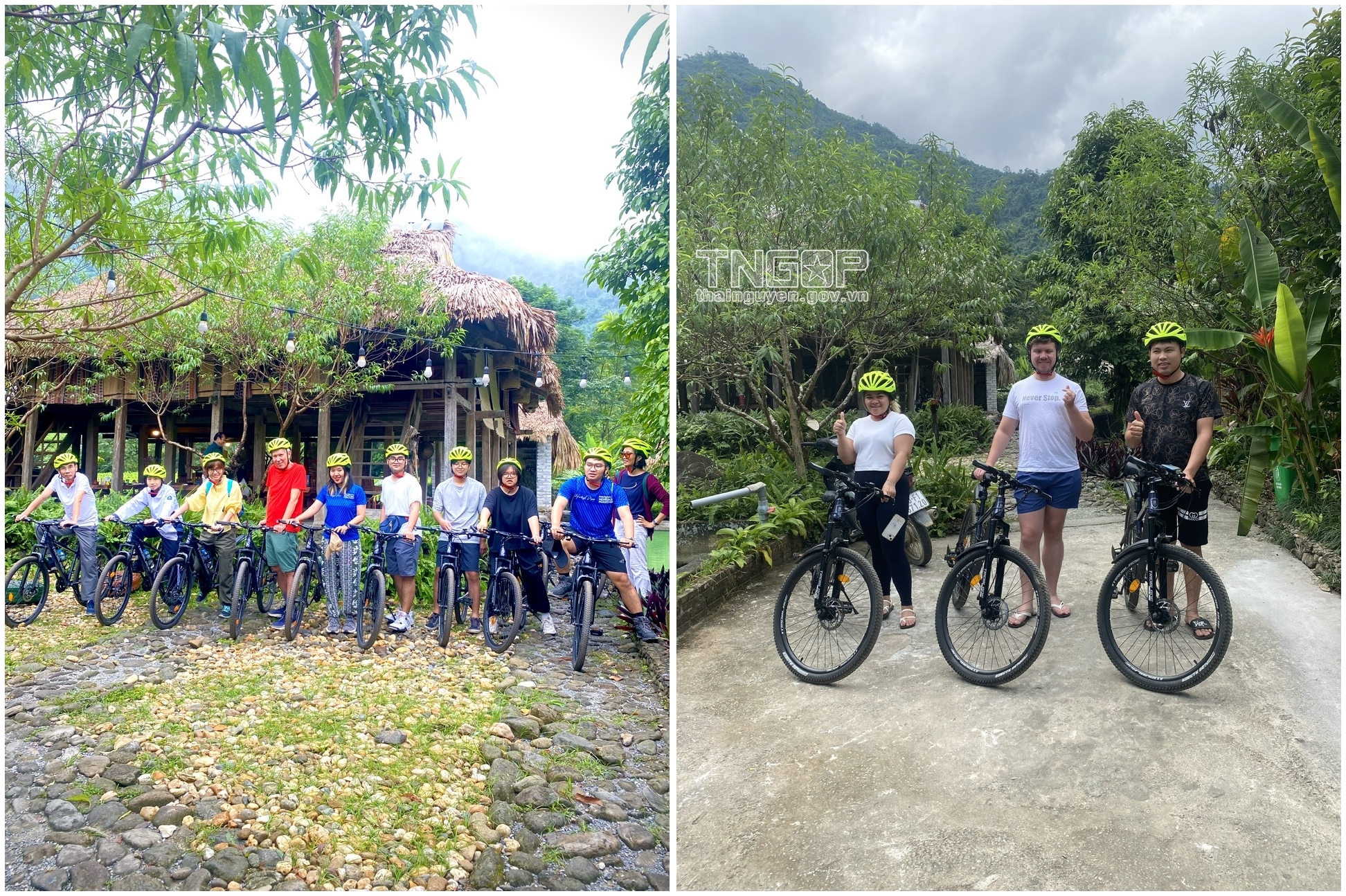 Du khách rất thích thú với hoạt động đạp xe thăm quan