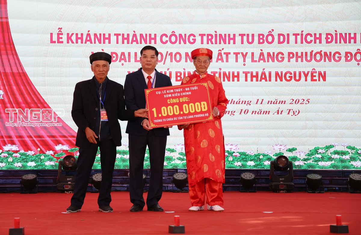 Công trình tu bổ, tôn tạo Di tích đình Phương Độ, xã Phú Bình với tổng mức đầu tư 14,9 tỷ đồng vừa được khánh thành với các hạng mục như: Đại đình, cổng, nghi môn, bình phong, sân đình, công văn chỉ và các hạng mục phụ trợ. Công trình hoàn thành không chỉ đáp ứng yêu cầu bảo tồn di sản mà còn góp phần bồi đắp bản sắc văn hóa và giáo dục tình yêu quê hương, đất nước cho các thế hệ. Dịp này, xã Phú Bình cũng long trọng tổ chức Đại lệ 10/10 âm lịch của làng Phương Độ.
