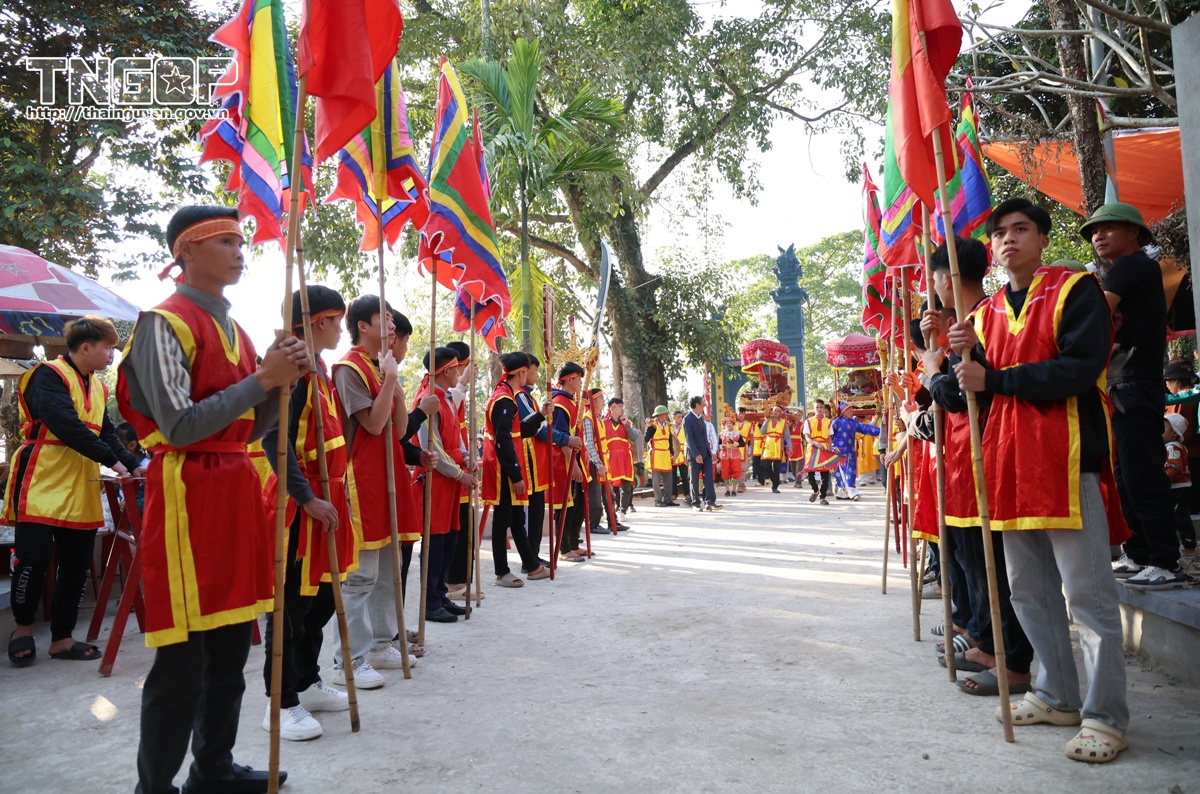 Dịp này, người dân địa phương cũng tổ chức Đại lệ 10/10 âm lịch làng Phương Độ - nghi thức truyền thống của làng được tổ chức thường niên hàng năm. (Trong ảnh: Nghi lễ rước kiệu - một nghi lễ quan trọng, mở đầu của Đại lệ)