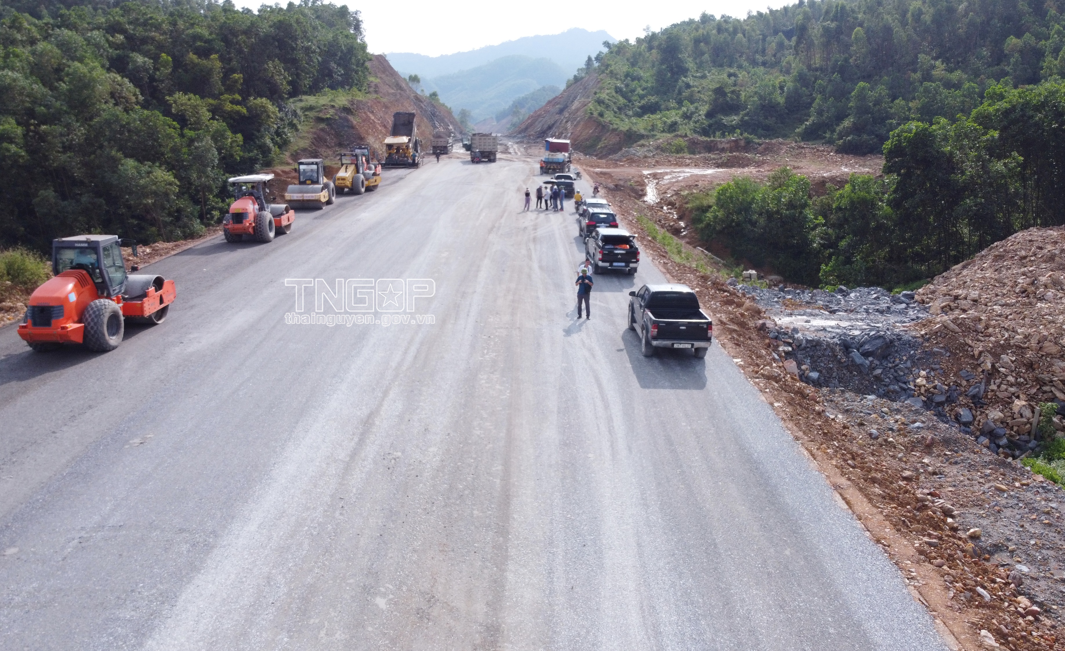 Còn tại Dự án đường Vành đai V (đoạn từ huyện Phú Bình nối với tỉnh Bắc Giang), Công ty TNHH Xây dựng và Thương mại Hoàng Hải - đơn vị thi công Dự án cũng đang tập trung nhân lực, vật lực thiết bị để thi công đáp ứng yêu cầu dự án và tiến độ giải ngân theo kế hoạch đề ra