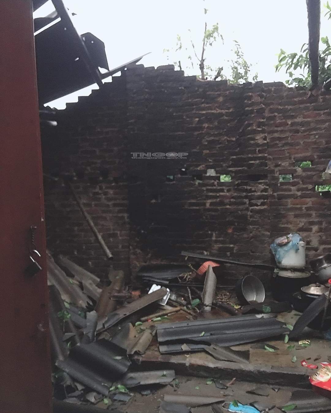 Mưa bão gây đổ cây và tốc mái nhà dân tại xóm Thống Nhất, xã An Khánh, huyện Đại Từ