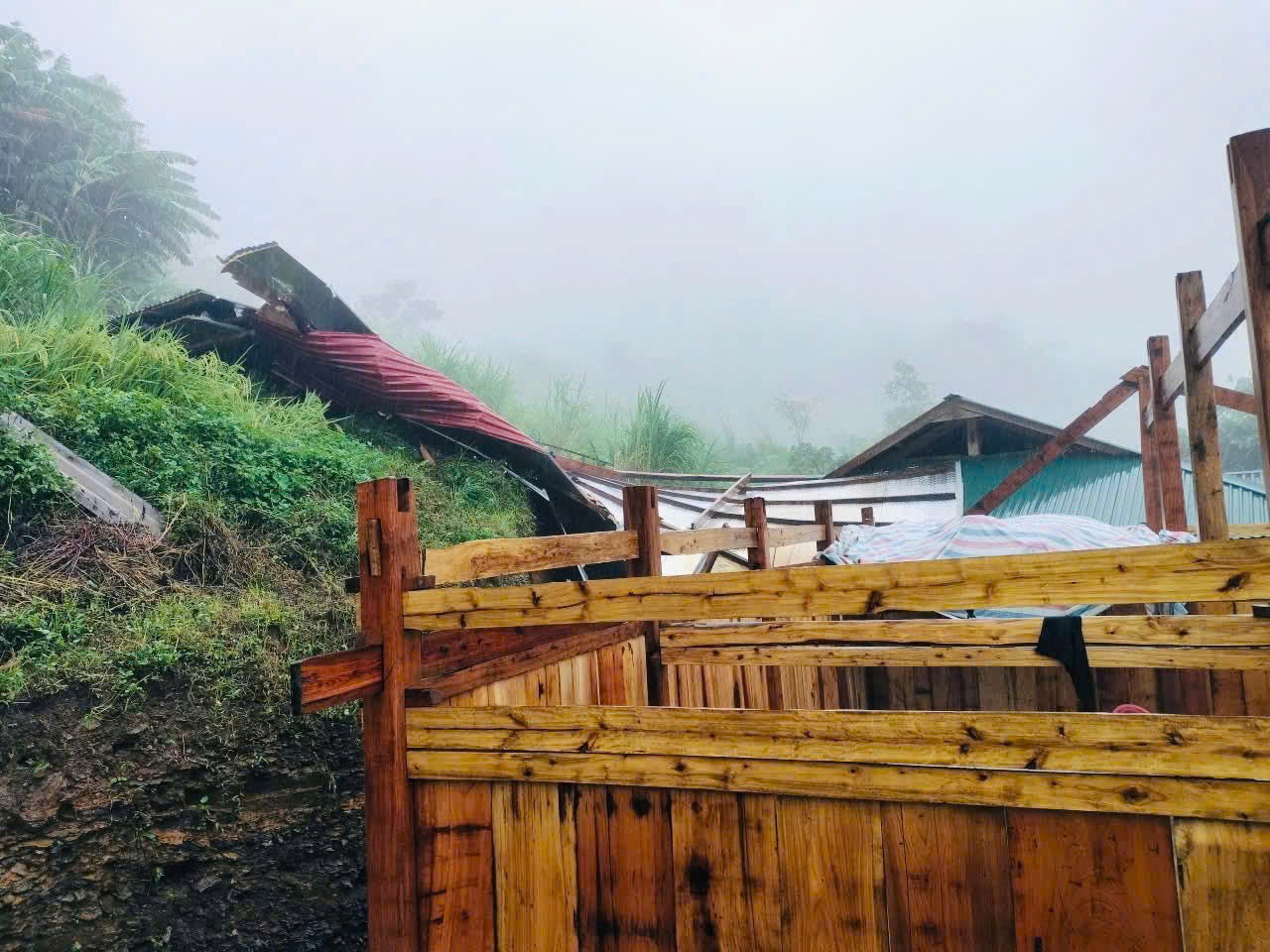 Ảnh hưởng của hoàn lưu bão số 10 làm nhiều diện tích lúa của xã Na Rì bị đổ, một số nhà dân bị tốc mái và nhiều khu vực bị sạt lở đất đá