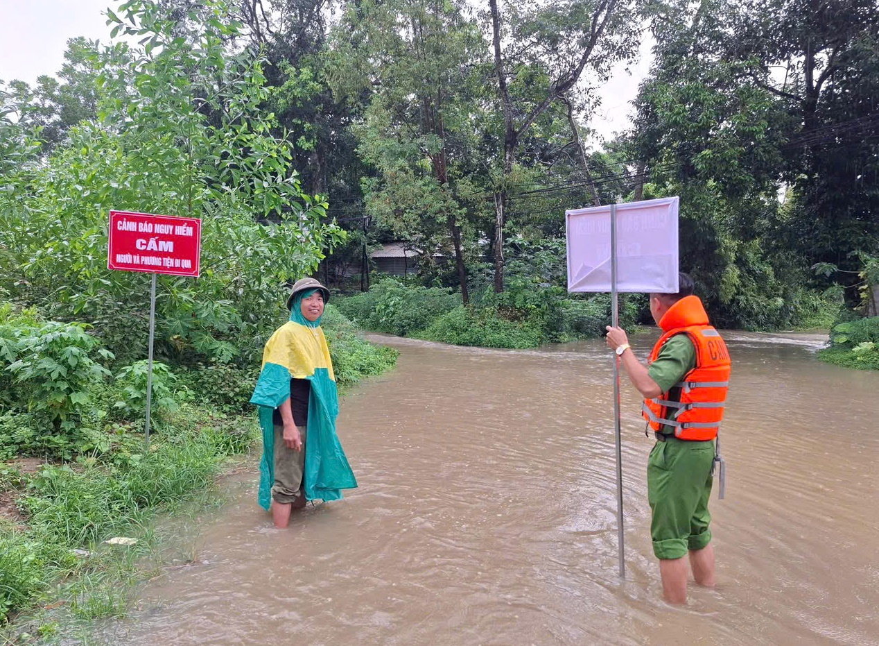 Một số khu vực ngập sâu của xã Phú Lương, xã Định Hóa được cắm biển cảnh báo nguy hiểm