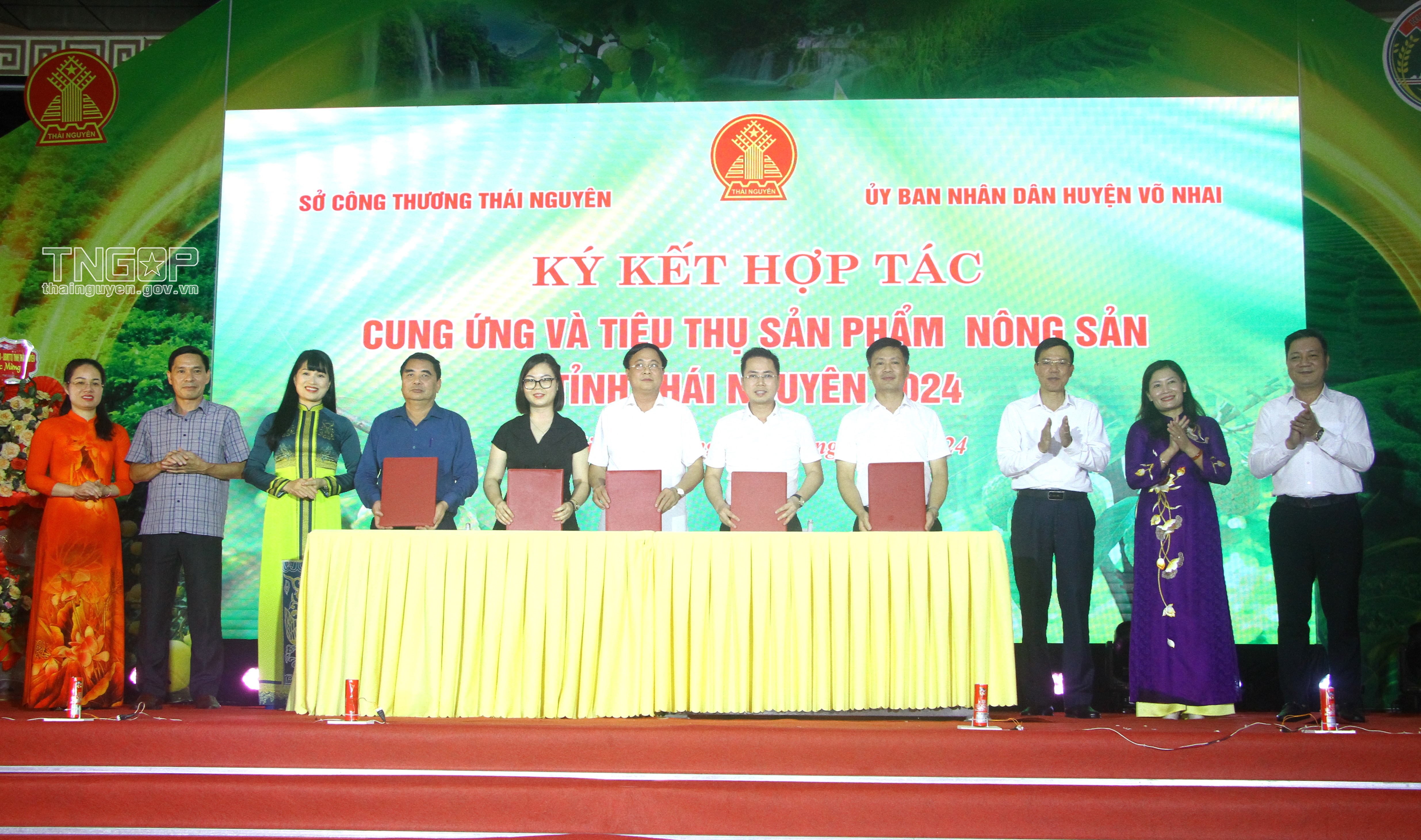 Lãnh đạo huyện Võ Nhai, Trung tâm Xúc tiến thương mại tỉnh Thái Nguyên và các doanh nghiệp ký kết hợp tác cung ứng và tiêu thụ sản phẩm na Võ Nhai
