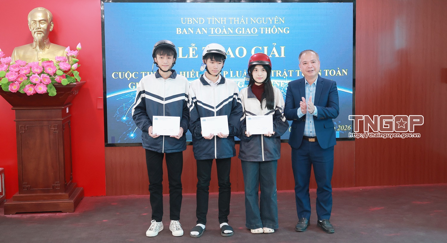 Ngày 3/2, Ban An toàn giao thông tỉnh Thái Nguyên tổ chức Tổng kết và trao giải Cuộc thi “Tìm hiểu pháp luật về trật tự an toàn giao thông trên mạng internet” năm 2025. Dự chương trình có lãnh đạo Ban An toàn giao thông tỉnh, Sở Xây dựng, Sở Giáo dục và Đào tạo, Phòng Cảnh sát giao thông - Công an tỉnh; đại diện các cơ quan, đơn vị, trường học và các cá nhân đạt giải.